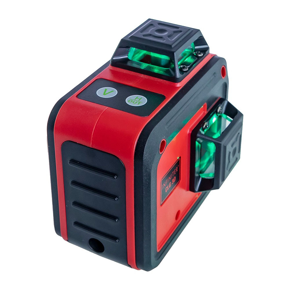 Лазерный уровень INFINITER CLG 3D проецирует одну горизонтальную плоскость 360° и две ортогональные вертикальные плоскости 360°. Диапазон работы лазера достигает 50м (с детектором), а погрешность всего 0,3мм/м. Точки отвеса (зенит, надир) образуются пересечением вертикальных плоскостей. Прибор имеет 2 режима работы: с автоматической компенсацией наклона корпуса прибора до ±3° и построения плоскостей и линий под произвольным наклоном. Импульсный режим позволяет использовать детектор для увеличения дальности работы, а также для работы с детектором в условиях хорошей освещенности, когда лазерный луч плохо виден. Прибор пригоден как для эксплуатации в закрытых помещениях, так и на открытых строительных площадках.
