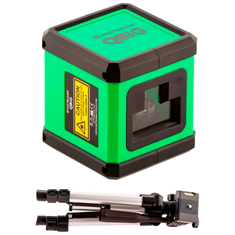 Уровень лазерный INSTRUMAX QBiG SET предназначен для работ внутри помещений. Строит 1 вертикальную и 1 горизонтальную линии, пересекающиеся под прямым углом. Дальность работы прибора до 20м. Яркий зеленый лазерный луч позволяет обходится без применения специальных очков. Самовыравнивающийся компенсатор оборудован замком для защиты от повреждения при транспортировке. При превышении угла наклона ±4°, выходящего за пределы диапазона выравнивания, лазерные лучи начинают моргать. Алюминиевый штатив с выдвижной колонкой для установки лазерного уровня на высоте от 27 до 60см. Подъемной частью можно плавно регулировать высоту в диапазоне 19см. Штатив позволяет быстро установить уровень на нужной высоте в любом месте.