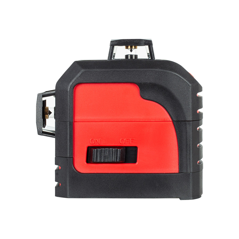 Лазерный уровень RGK PR-3M для нивелирования и разметки в помещении. Точность — ±0,2 мм на 1 м. Проекция трёх лазерных плоскостей на 360° — одной горизонтальной и двух вертикальных под углом 90° друг к другу. Вертикальные линии можно включать по одиночке или отключить полностью. Автоматический компенсатор выставляет нивелир в горизонт в пределах ±3,5°. При превышении предельного наклона прибор сигнализирует миганием лазерных линий о невозможности автокомпенсации — для дальнейшей работы потребуется более тщательное выравнивание. Построение наклонных линий возможно благодаря функции блокировки компенсации. Изоляция от воды и пыли соответствует стандарту IP54, что позволяет использовать прибор рядом с источниками водяных брызг и в сильном запылении. Для установки на треггер или штатив нивелир RGK PR-3M оснащён резьбой 1/4".