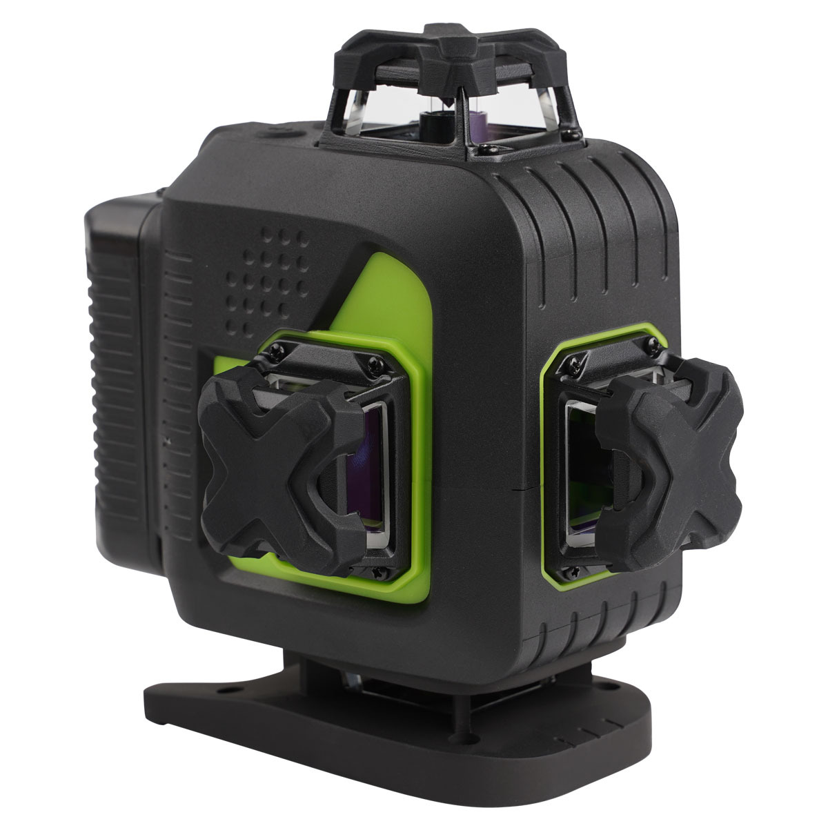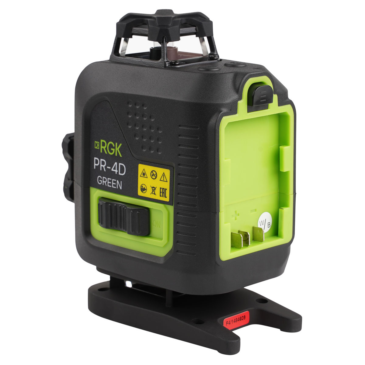 Лазерный уровень RGK PR-4D GREEN - универсальный прибор с 4 лазерными лучами, который отличается повышенной надежностью и долговечностью. Все критически важные узлы корпуса либо защищены резиной, поглощающей энергию ударов, либо выполнены из металла. Эта модель имеет ряд существенных преимуществ перед внешне похожими аналогами: высокое качество сборки и компонентов, в конструкции применены японские излучатели SHARP, одни из лучших в мире; продуманная комплектация, каждый аксессуар оптимальным образом раскрывает возможности нивелира; предпродажная юстировка; годовая гарантия на производственный брак. Что такое 4D? Четыре лазерные линии по 360° охватывают все помещение и позволяют справиться с работой без перестановок осепостроителя. С такой схемой можно расположить горизонтальные линии максимально близко к полу для заливки и укладки различных покрытий или потолку, когда требуется установить металлоконструкции или климатическое оборудование. Две вертикальные линии лазерного уровня помогут установить двери, окна, перегородки и стены, а также разметить прямой угол. Совместимость с приемником Лазерный нивелир RGK PR-4D GREEN может работать в импульсном режиме, что дает возможность выполнять нивелировку на расстояниях до 70 м при использовании подходящего приемника, например, модели RGK LD-9. Современный аккумулятор Батарея емкостью 5200 мАч обеспечивает до 18 часов бесперебойной работы. Светодиодная шкала на корпусе аккумулятора наглядно отображает уровень заряда. Прибор, в отличие от многих аналогов, можно запитать не только от сети, но также от от пауэрбанка или другого источника энергии через разъем USB Type-C. Разметка в любом положении Лазерный уровень RGK PR-4D GREEN может проецировать линии под наклоном, что часто требуется при обустройстве лестниц, укладке плитки и элементов декора. Для этого необходимо включить нивелир без разблокировки компенсатора и выставить под произвольным углом. Продуманная комплектация Универсальный магнитный кронштейн с выдвижными опорами для дополнительной стабильности при установке на полу и проушиной для подвешивания. Клипса для крепления кронштейна на металлическом профиле при монтаже потолочных конструкций. Пульт дистанционного управления, который будет особенно полезен на больших объектах и в частных домах. Мишень для лучшей видимости лазерных лучей и др.