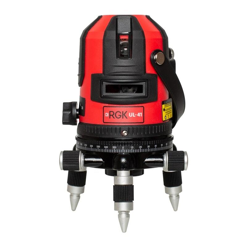 Современный лазерный нивелир RGK UL-41 строит четыре вертикальные и одну горизонтальную плоскость с развёрткой 110°. Благодаря поворотной конструкции, горизонтальному лимбу и двум точным винтам наводки лазерный уровень позволяет поворачивать лазер на 360° по горизонтали, исключая необходимость перестановки прибора. Точность построения линии составляет 0,2 мм на 1м, рабочая дистанция достигает 20 метров в помещении и до 50 метров – при использовании приемника излучения, в том числе, и на улице. Мощный лазер II класса, которым оснащён UL-41, обеспечивает построение чёткой, хорошо различимой в пределах рабочей дистанции линии на любой поверхности. Благодаря оснащению системой самовыравнивания на основе магнитного компенсатора, установка UL-41 не займёт много времени: система автоматически устранит отклонение до 5°. При необходимости точно выровнять прибор помогут винты на трегере и встроенный пузырьковый уровень. Лазерный отвес позволяет точно разместить нивелир на точке измерения. Металлический трегер обеспечивает отличную устойчивость прибора на любой поверхности. Лазерный нивелир UL-41 выпускается в трёх модификациях: UL-41 - питание осуществляется от четырёх батареек типа АА, заряда которых хватает на 5 часов работы при использовании всего функционала устройства. UL-41A - оснащена фирменным аккумулятором. Полностью заряженный, он гарантирует работу до 16 часов. UL-41W - помимо аккумулятора снабжена усиленным лазером для работы в ярко освещённых помещениях и обеспечивает чёткий, хорошо различимый луч в любых условиях.