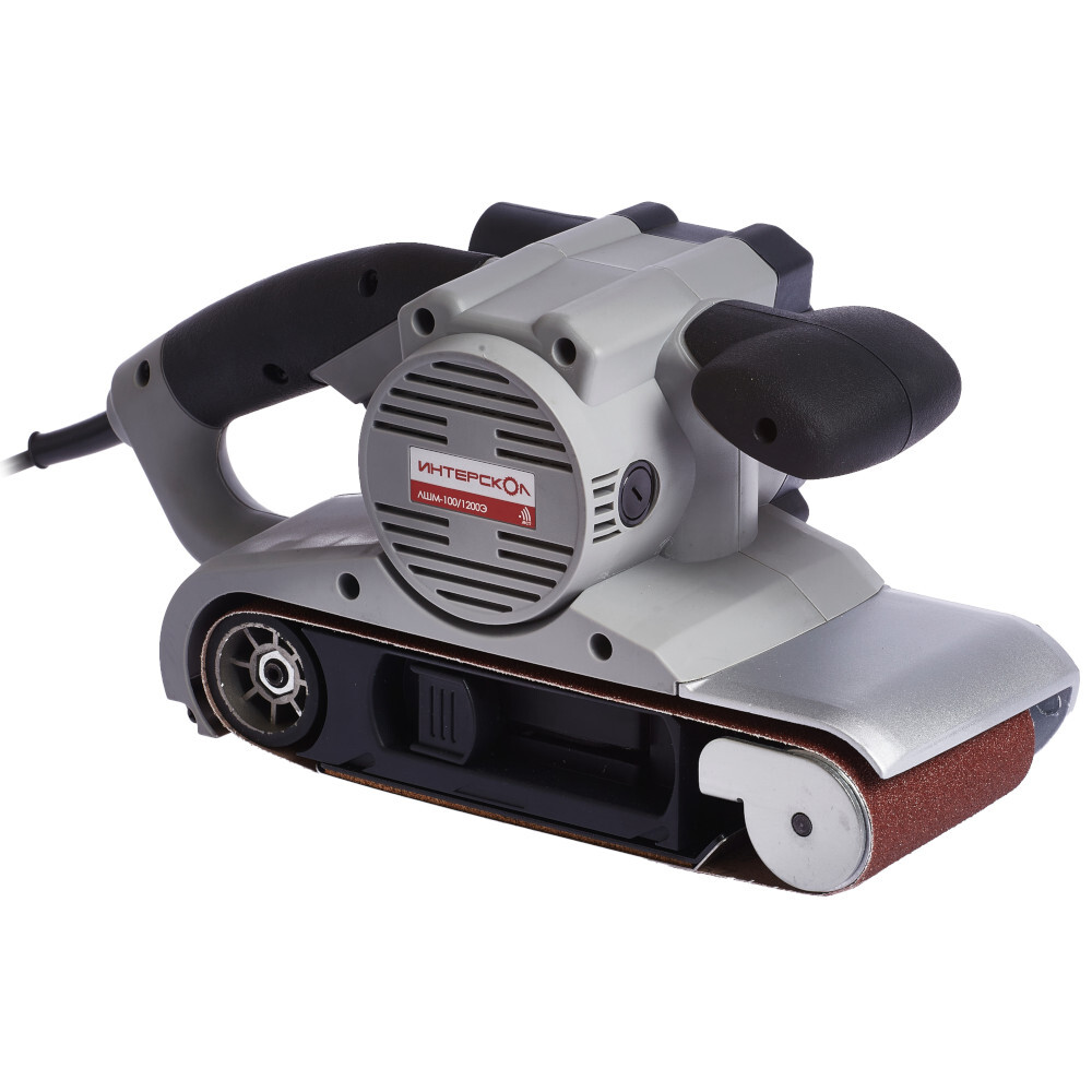 Ленточная шлифовальная ИНТЕРСКОЛ ЛШМ-100/1200Э с электрическим двигателем, удобный в использовании инструмент, мощностью 1200 Вт. Максимально быстрая и эффективная черновая шлифовка поверхности любого материала, она позволяет зачищать металлические изделия, выравнивать и обрабатывать (например, скруглять форму, циклевать паркет) деревянные изделия, снимать краску со стен, выравнивать стыки, а также затачивать инструмент.
