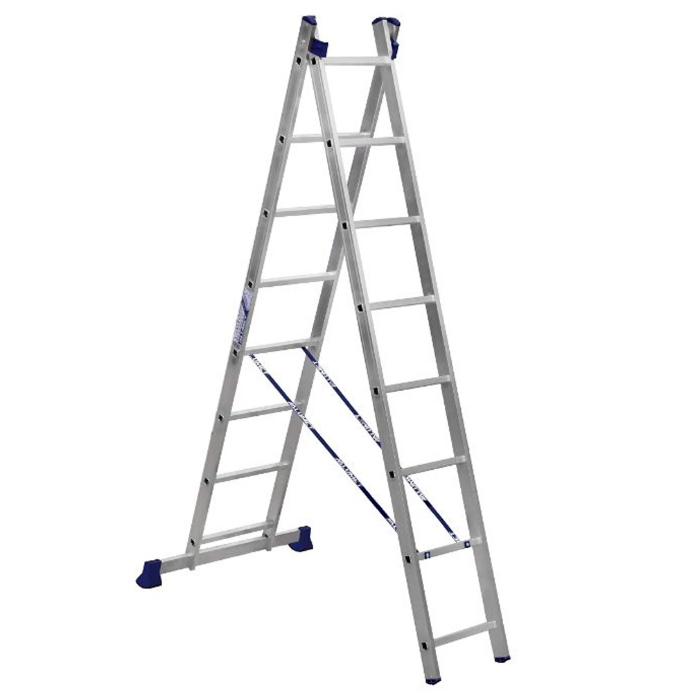 Лестница Алюмет 2* 8 алюминиевая алюминиевая предназначена для осуществления работ на высоте. Ее ножки надежно закрепляются на земле, что позволяет специалисту без опаски выполнять свои задачи. Легкая и прочная, такая лестница станет отличным приобретением для строительной бригады и простого домашнего мастера.
