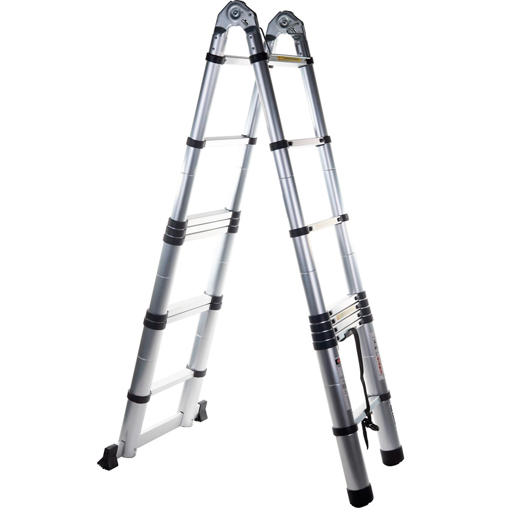 - Телескопическая конструкция - лестница занимает мало места при хранении благодаря выдвижной конструкции
