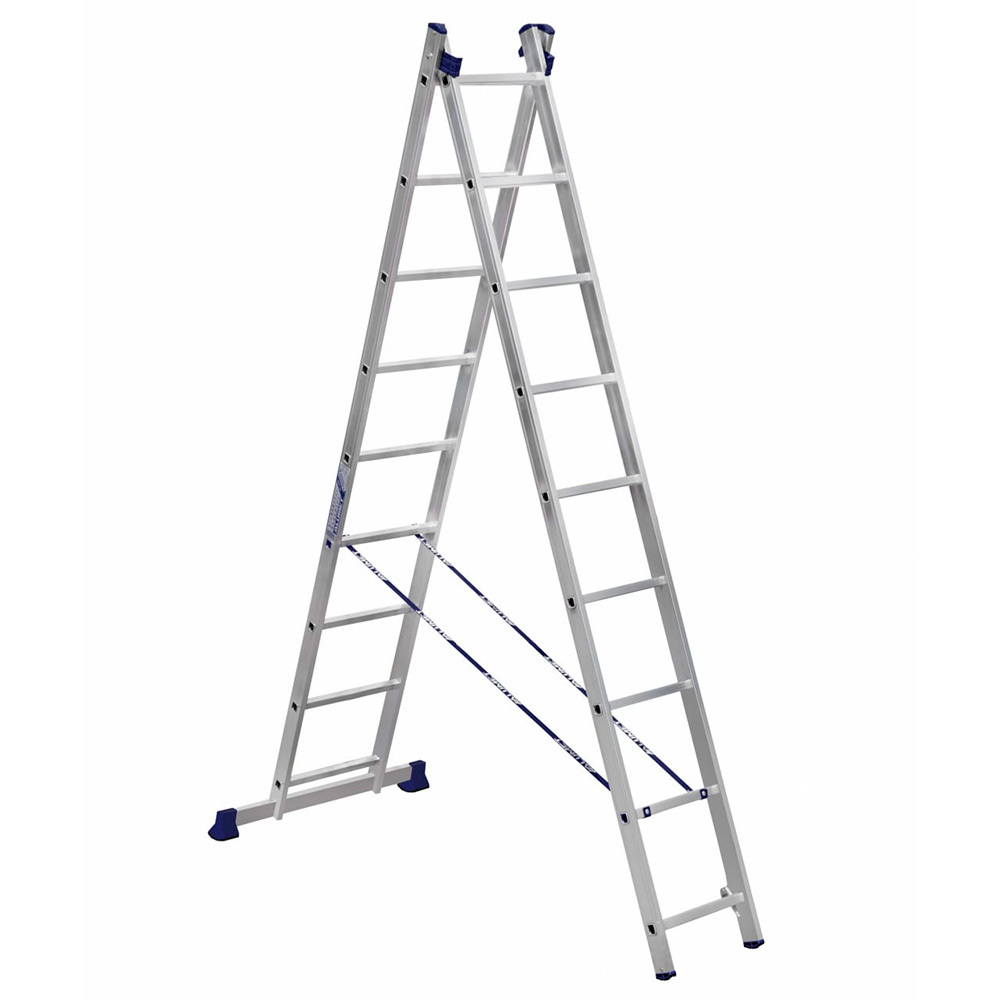Лестница Алюмет 2* 9 алюминиевая алюминиевая предназначена для осуществления работ на высоте. Ее ножки надежно закрепляются на земле, что позволяет специалисту без опаски выполнять свои задачи. Легкая и прочная, такая лестница станет отличным приобретением для строительной бригады и простого домашнего мастера.