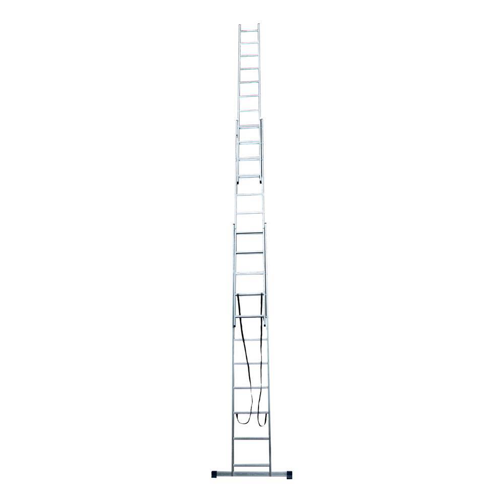 Лестница алюминиевая STAIRS трехсекционная 3x11 ступеней AL311 это многофункциональная лестница, мобильная и простая в использовании. Лестница из трех секций обладает наибольшей рабочей высотой. Лестница может служить раздвижной, двухсекционной, стремянкой с выдвижной секцией, и отдельной приставной лестницей, так как верхняя секция легко вынимается. Каркас и ступени изготовлены из алюминиевого сплава. Алюминиевый сплав делает лестницу легкой, но при этом прочной за счет увеличенной износостойкости материала. Алюминий не подвержен коррозии, что позволяет использовать лестницу как в помещении, так и на открытом пространстве.