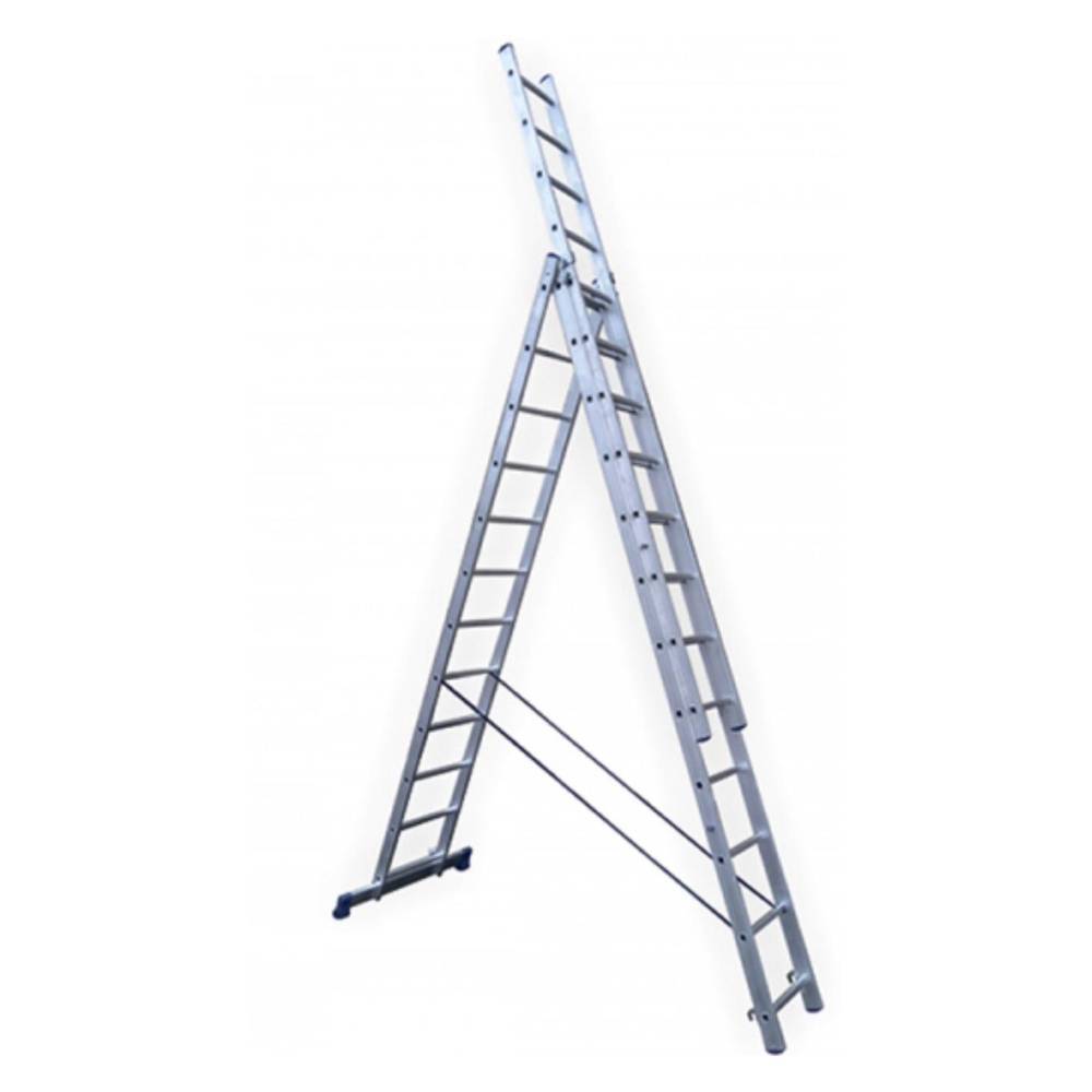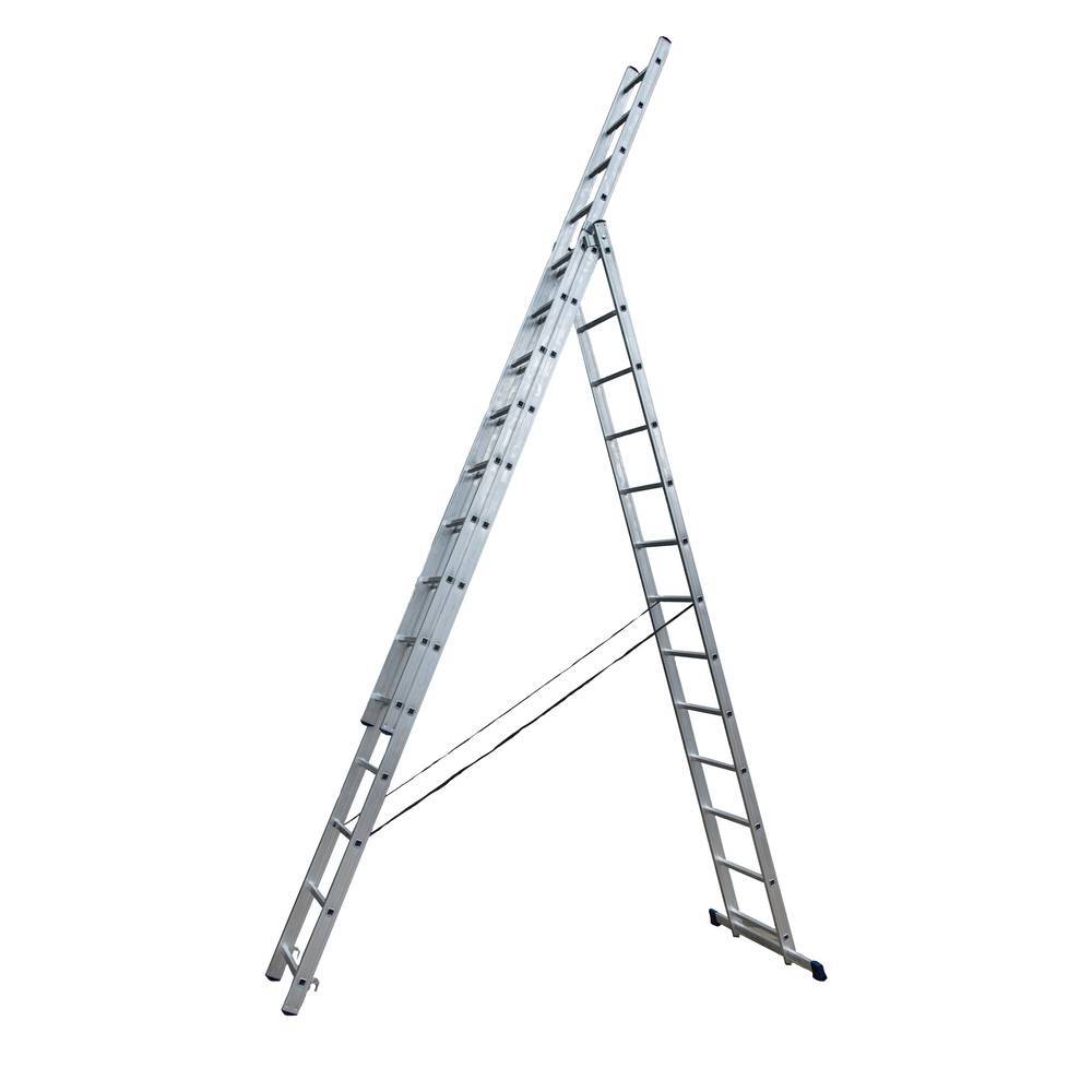 Лестница алюминиевая STAIRS трехсекционная 3x13 ступеней AL313 это многофункциональная лестница, мобильная и простая в использовании. Лестница из трех секций обладает наибольшей рабочей высотой. Лестница может служить раздвижной, двухсекционной, стремянкой с выдвижной секцией, и отдельной приставной лестницей, так как верхняя секция легко вынимается. Каркас и ступени изготовлены из алюминиевого сплава. Алюминиевый сплав делает лестницу легкой, но при этом прочной за счет увеличенной износостойкости материала. Алюминий не подвержен коррозии, что позволяет использовать лестницу как в помещении, так и на открытом пространстве.