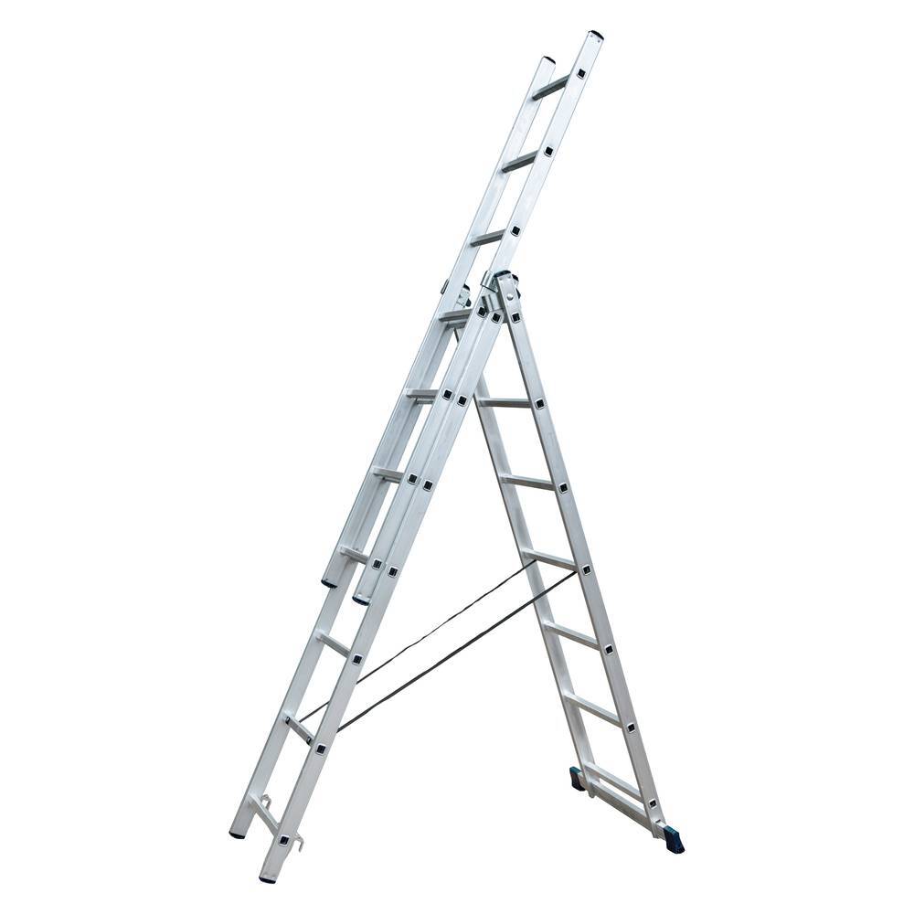 Лестница алюминиевая STAIRS трехсекционная 3x7 ступеней AL307 это многофункциональная лестница, мобильная и простая в использовании. Лестница из трех секций обладает наибольшей рабочей высотой. Лестница может служить раздвижной, двухсекционной, стремянкой с выдвижной секцией, и отдельной приставной лестницей, так как верхняя секция легко вынимается. Каркас и ступени изготовлены из алюминиевого сплава. Алюминиевый сплав делает лестницу легкой, но при этом прочной за счет увеличенной износостойкости материала. Алюминий не подвержен коррозии, что позволяет использовать лестницу как в помещении, так и на открытом пространстве.