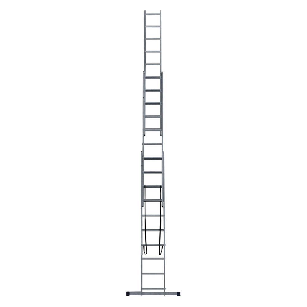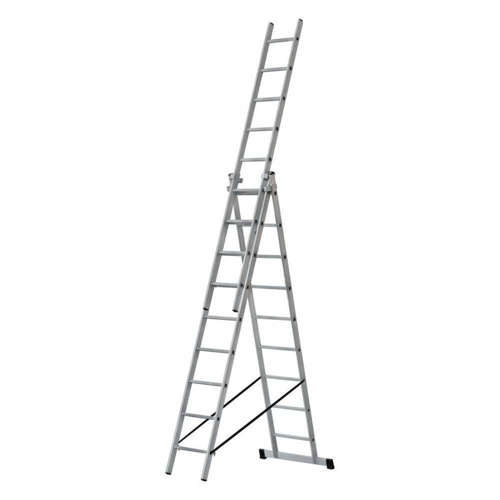 Лестница алюминиевая STAIRS трехсекционная 3x9 ступеней AL309 это многофункциональная лестница, мобильная и простая в использовании. Лестница из трех секций обладает наибольшей рабочей высотой. Лестница может служить раздвижной, двухсекционной, стремянкой с выдвижной секцией, и отдельной приставной лестницей, так как верхняя секция легко вынимается. Каркас и ступени изготовлены из алюминиевого сплава. Алюминиевый сплав делает лестницу легкой, но при этом прочной за счет увеличенной износостойкости материала. Алюминий не подвержен коррозии, что позволяет использовать лестницу как в помещении, так и на открытом пространстве.