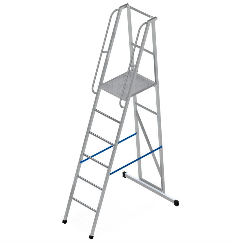 Лестница-платформа фиксированной высоты алюминиевая MEGAL ЛПФВА Н=2.0-4 с траверсой предназначена для подъема, организации рабочего места при досмотре автотранспорта, строительных, монтажных, складских работах. Представляет собой легкую складную конструкция из алюминиевых профилей высокой прочности. Имеет безопасные ступени из специального рифленого профиля. Траверса в основании придает дополнительную устойчивость лестнице. Все соединительные узлы и элементы полностью безопасны, обработаны и одобрены службой контроля качества. Площадка размером 600х500мм позволяет удобно расположиться рабочему с необходимым инструментом. Противоскользящая поверхность площадки изготовлена из рифленого алюминиевого листа «квинтет». Лестница оснащена поручнями и ограждением высотой 1,1м для безопасного подъема, спуска и проведения работ. Складная конструкция позволяет удобно эксплуатировать, транспортировать и хранить лестницу.