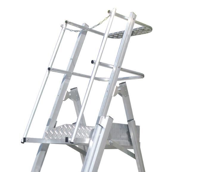Лестница - платформа телескопическая MEGAL ТЛП-2 (1,3 - 1,9) представляет собой безопасную и легкую конструкцию из алюминиевых профилей высокой прочности. Предназначена для работ в торговых залах, на складах, вдоль стеллажей и других объектов, при проведении ремонтных, монтажных и иных работ на возвышении. Лестница имеет легкий вес за счет использования алюминиевых сплавов. Лестница имеет регулируемый диапазон рабочих высот за счет изменения высоты рабочей площадки. Трехстороннее ограждение площадки со встроенной защитной планкой в районе колен, бортовое ограждение, ступени из рифленой трубы обеспечивают безопасный подъем, спуск и проведение работ. Заход на площадку имеет съемную цепочку. Площадка размером 680х510мм позволяет удобно расположиться рабочему с необходимым инструментом. Складная конструкция позволяет осуществлять простую и быструю сборку. Небольшая занимаемая площадь и прочные поворотные колеса со стопорами позволяют легко маневрировать в ограниченном пространстве.