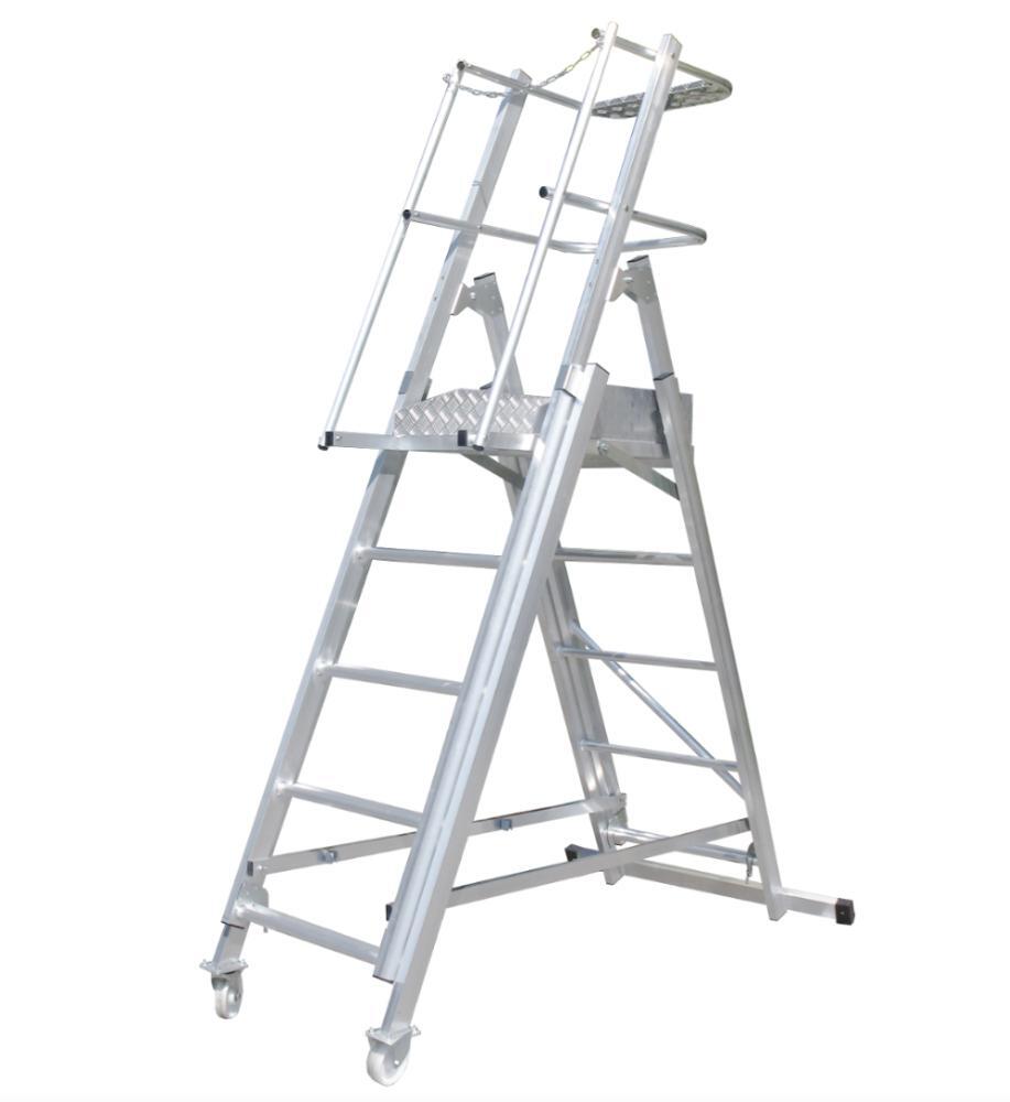 Лестница - платформа телескопическая MEGAL ТЛП-2 (1,6 - 2,5) представляет собой безопасную и легкую конструкцию из алюминиевых профилей высокой прочности. Предназначена для работ в торговых залах, на складах, вдоль стеллажей и других объектов, при проведении ремонтных, монтажных и иных работ на возвышении. Лестница имеет легкий вес за счет использования алюминиевых сплавов. Лестница имеет регулируемый диапазон рабочих высот за счет изменения высоты рабочей площадки. Трехстороннее ограждение площадки со встроенной защитной планкой в районе колен, бортовое ограждение, ступени из рифленой трубы обеспечивают безопасный подъем, спуск и проведение работ. Заход на площадку имеет съемную цепочку. Площадка размером 680х510мм позволяет удобно расположиться рабочему с необходимым инструментом. Складная конструкция позволяет осуществлять простую и быструю сборку. Небольшая занимаемая площадь и прочные поворотные колеса со стопорами позволяют легко маневрировать в ограниченном пространстве.