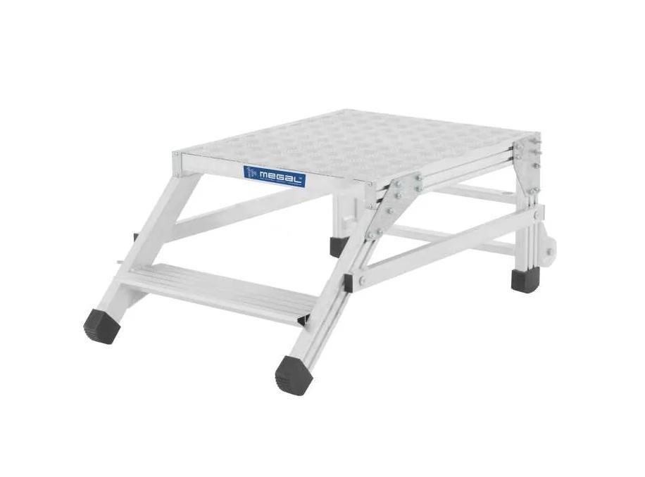 Лестница подмости MEGAL ЛП-0,4 применяется при выполнении монтажных, сервисных и т.п. работах на небольшой высоте. Ножки подмостей укомплектованы резиновыми противоскользящими башмаками и комплектом колес. Существует возможность установки поручней для лестницы – подмостей.