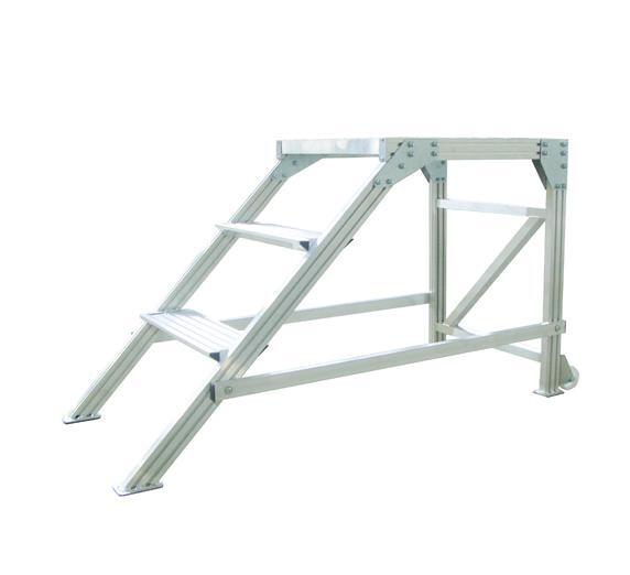 Широкие ступени глубиной 160 мм изготовлены из специального рифленого профиля для безопасности подъема и комфорта в работе. Верхняя площадка размером - 0,600х0,675 м. Наклонный лестничный марш под углом 45 градусов.