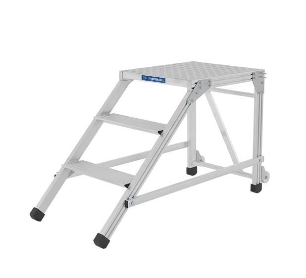 Лестница подмости MEGAL ЛП-0,8 применяются при выполнении монтажных, сервисных и т.п. работах на небольшой высоте. Ножки подмостей укомплектованы резиновыми противоскользящими башмаками и комплектом колес. Существует возможность установки поручней для лестницы – подмостей.