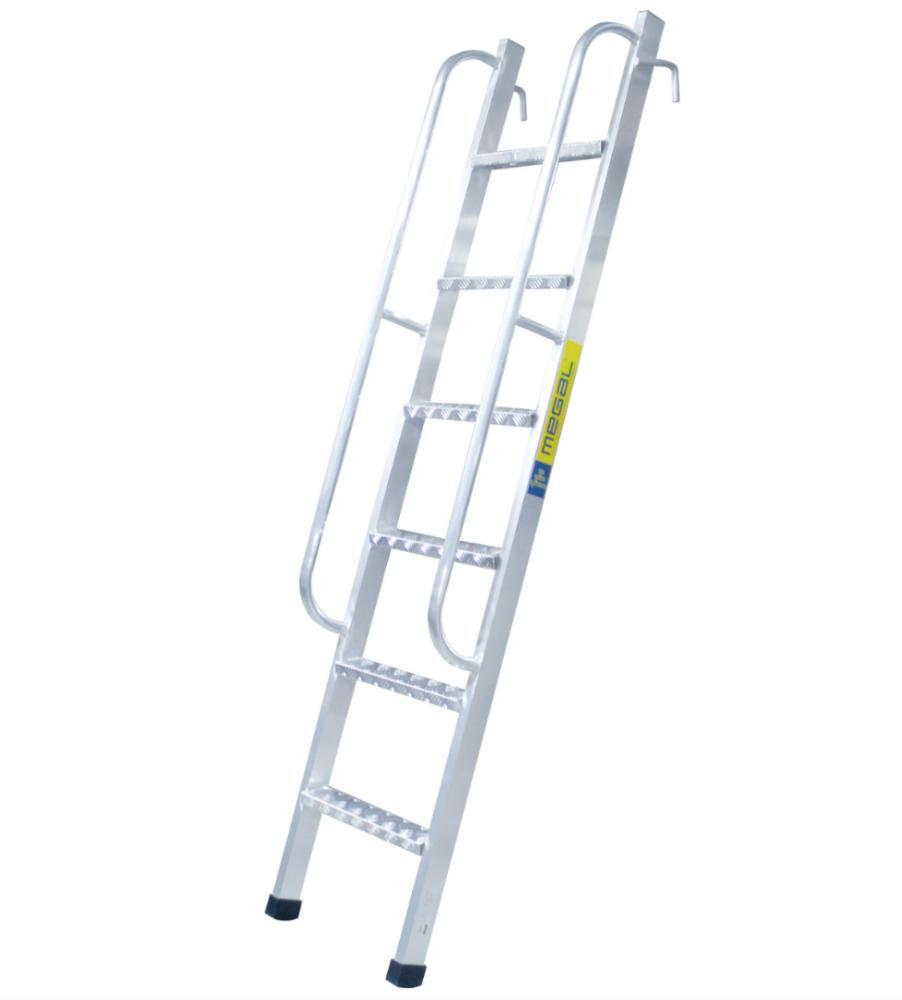 Лестница приставная стеллажная MEGAL ЛПС - 3,5 с поручнями предназначена для обеспечения безопасного доступа обслуживающего персонала к стеллажным системам различно высоты. На верхних концах тетив имеется 2 крюка для навешивания используемой лестницы на трубу (профиль). Снизу лестница оснащена резиновыми противоскользящими башмаками. Удобные ступени из рифленого листа квинтет обеспечивают комфортный подъем и спуск. Соединения ступеней и тетивы, выполненные посредством аргонно-дуговой сварки, увеличивают надежность и долговечность лестницы. Для безопасного подъема имеются поручни. Высокая грузоподъемность лестницы обеспечивается за счет использования труб и профилей со стенкой не менее 2,5мм.