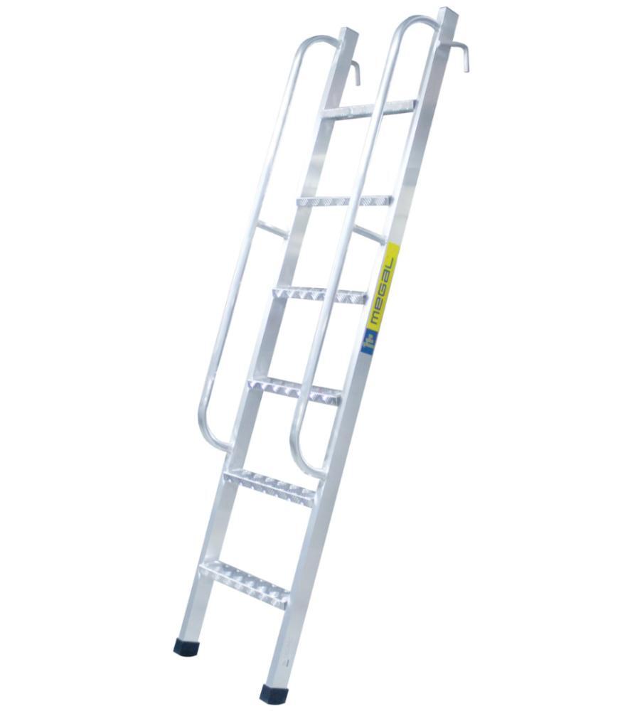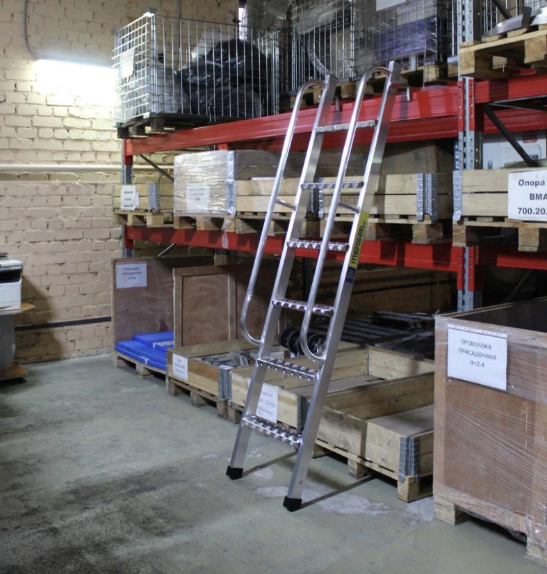 Лестница приставная стеллажная MEGAL ЛПС - 4,5 с поручнями предназначена для обеспечения безопасного доступа обслуживающего персонала к стеллажным системам различно высоты. На верхних концах тетив имеется 2 крюка для навешивания используемой лестницы на трубу (профиль). Снизу лестница оснащена резиновыми противоскользящими башмаками. Удобные ступени из рифленого листа квинтет обеспечивают комфортный подъем и спуск. Соединения ступеней и тетивы, выполненные посредством аргонно-дуговой сварки, увеличивают надежность и долговечность лестницы. Для безопасного подъема имеются поручни. Высокая грузоподъемность лестницы обеспечивается за счет использования труб и профилей со стенкой не менее 2,5мм.