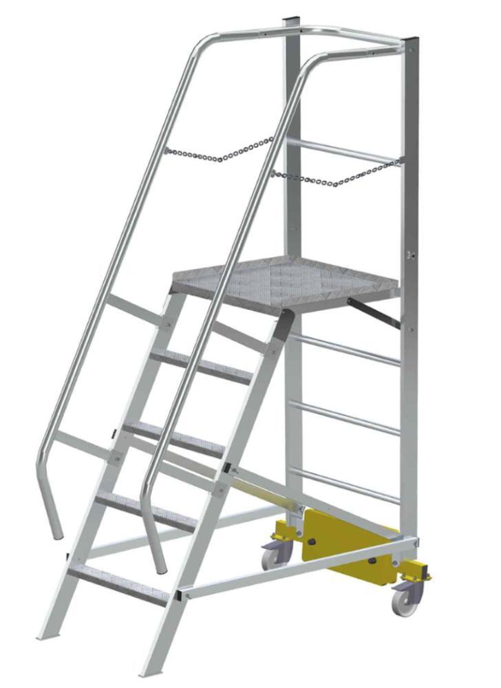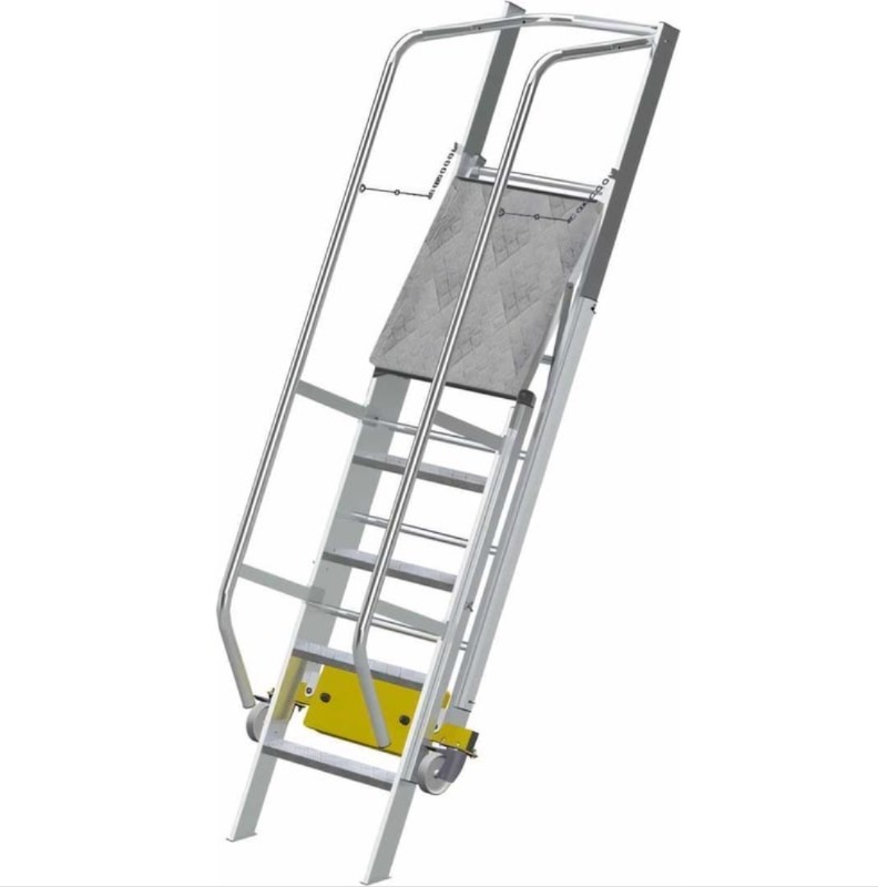 Лестница с платформой компактная MEGAL ЛСПК-1,4 (0,82) предназначена для работ в торговых залах, на складах, вдоль стеллажей и других объектов, при проведении ремонтных, монтажных и иных работ на возвышении. Площадка размером 650х600 мм позволяет удобно расположиться рабочему с необходимым инструментом. Трехстороннее ограждение площадки со встроенной защитной планкой в районе колен, ступени с глубиной 80 мм обеспечивают безопасный подъем, спуск и проведение работ. Складная конструкция и транспортировочные колеса обеспечивает простоту перемещения и складирования оборудования в местах проведения работ. Лестница имеет легкий вес за счет использования алюминиевых сплавов.