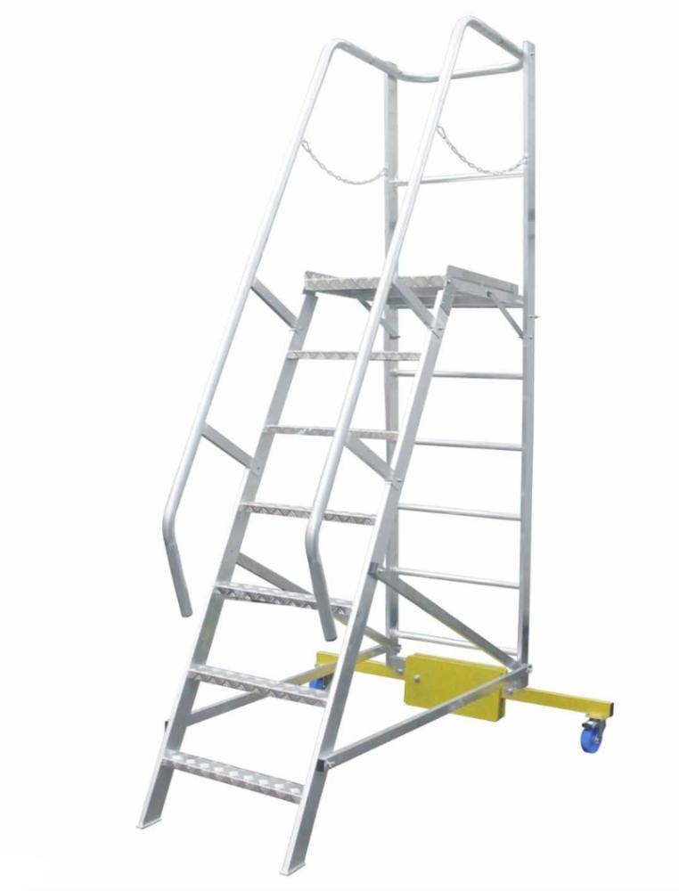 Лестница с платформой компактная MEGAL ЛСПК-2,1 (0,82) предназначена для работ в торговых залах, на складах, вдоль стеллажей и других объектов, при проведении ремонтных, монтажных и иных работ на возвышении. Площадка размером 650х600 мм позволяет удобно расположиться рабочему с необходимым инструментом. Трехстороннее ограждение площадки со встроенной защитной планкой в районе колен, ступени с глубиной 80 мм обеспечивают безопасный подъем, спуск и проведение работ. Складная конструкция и транспортировочные колеса обеспечивает простоту перемещения и складирования оборудования в местах проведения работ. Лестница имеет легкий вес за счет использования алюминиевых сплавов.