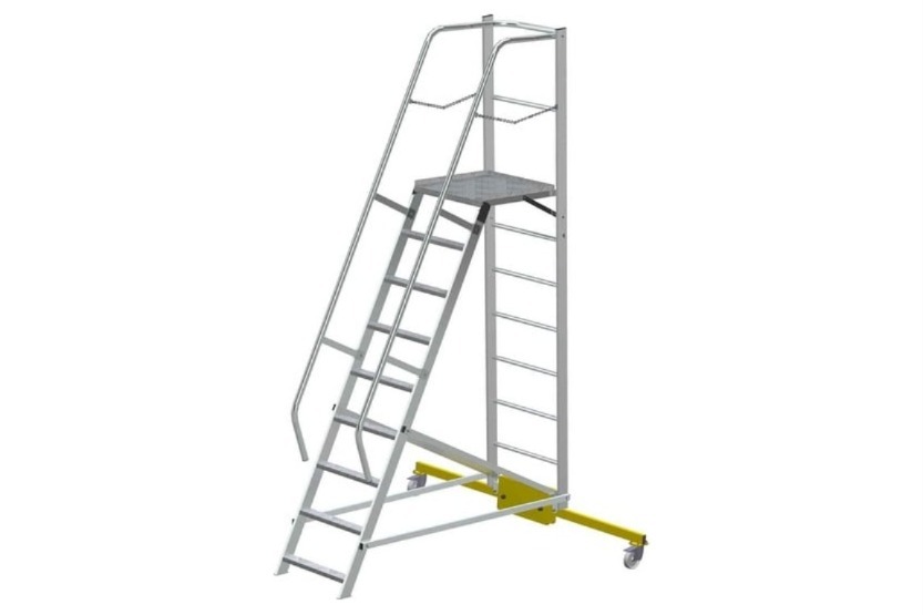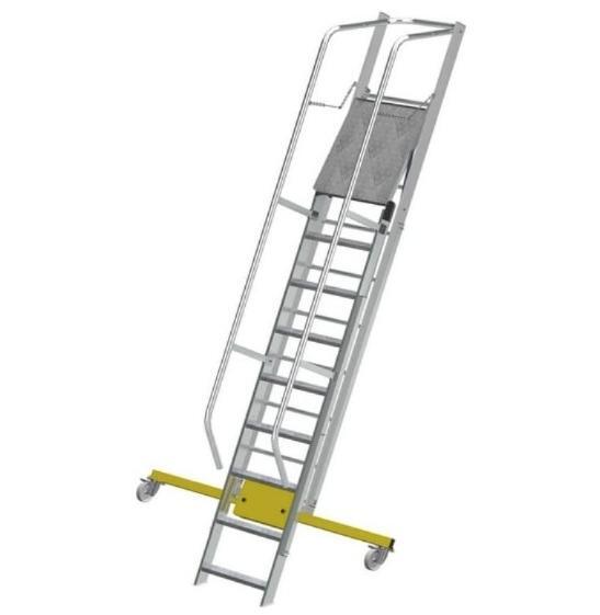 Лестница с платформой компактная MEGAL ЛСПК-2,75 (1,9) предназначена для работ в торговых залах, на складах, вдоль стеллажей и других объектов, при проведении ремонтных, монтажных и иных работ на возвышении. Площадка размером 650х600 мм позволяет удобно расположиться рабочему с необходимым инструментом. Трехстороннее ограждение площадки со встроенной защитной планкой в районе колен, ступени с глубиной 80 мм обеспечивают безопасный подъем, спуск и проведение работ. Складная конструкция и транспортировочные колеса обеспечивает простоту перемещения и складирования оборудования в местах проведения работ. Лестница имеет легкий вес за счет использования алюминиевых сплавов.