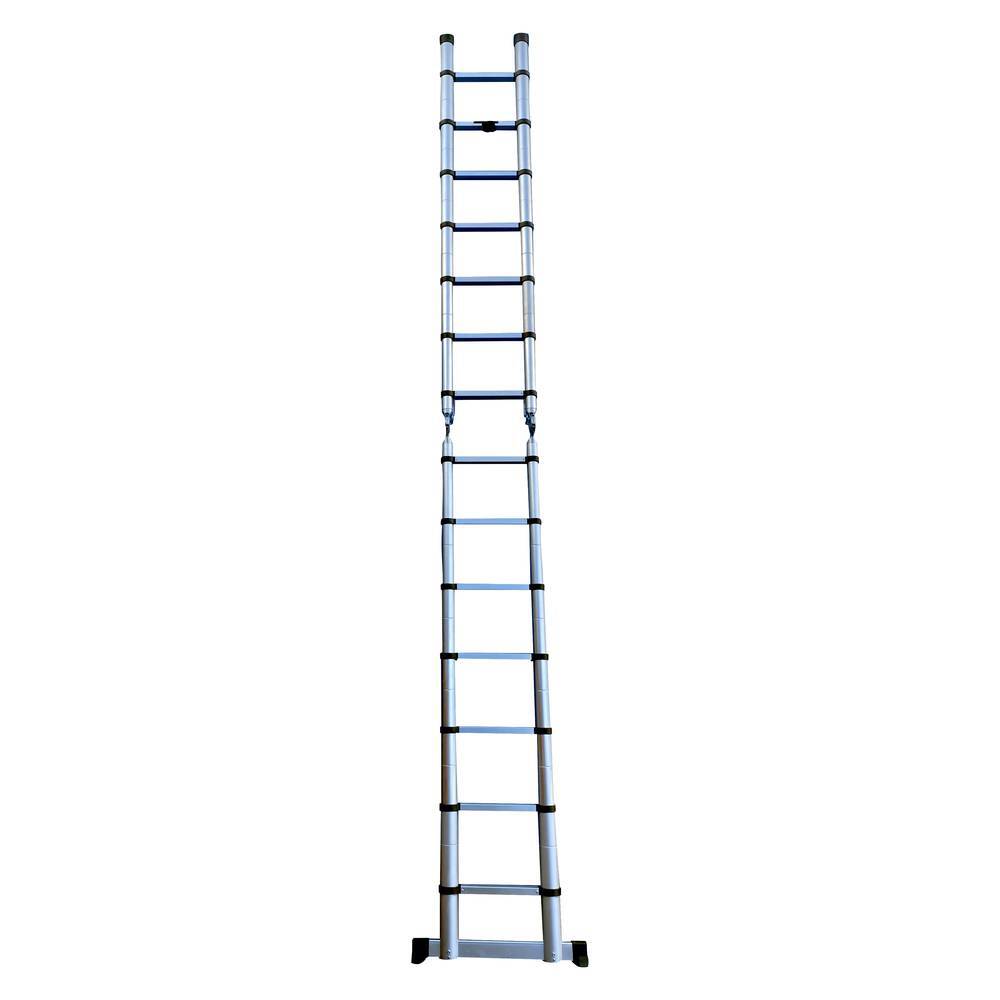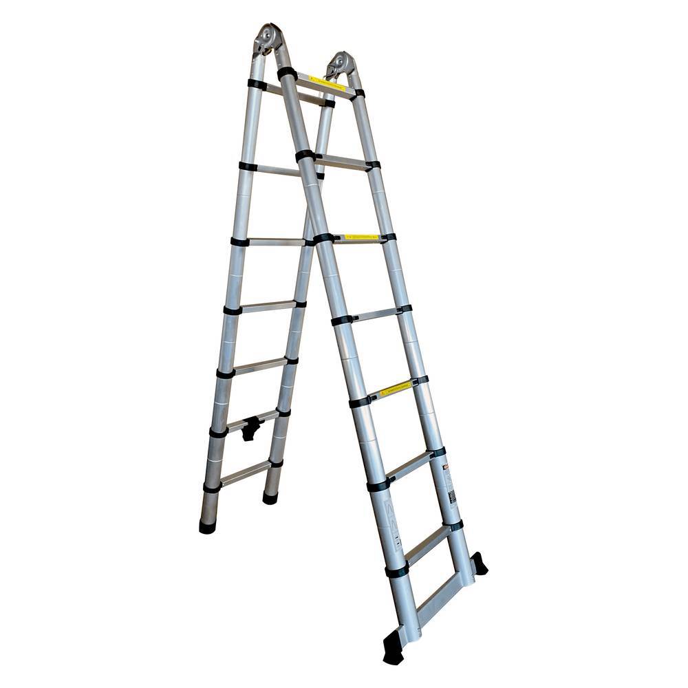 Лестница телескопическая Алюмет двухсекционная 2x7 ступеней (DTLH 2.2) предназначена для проведения различных видов работ на высоте до 5.3м. Лестница изготовлена из высокопрочного алюминиевого сплава. Шарниры выполнены из стали и покрыты оцинкованным покрытием. Лестница может быть использована в положении "Приставная лестница" и "Стремянка".
