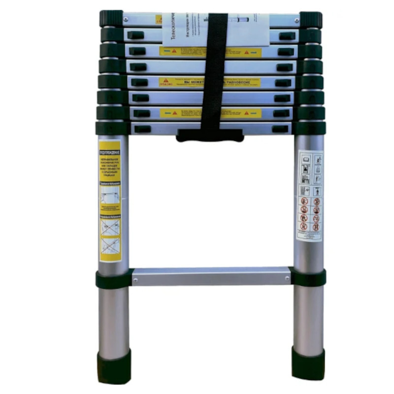 Лестница телескопическая Алюмет односекционная 9 ступеней (TLS 2.6)- представляет собой лестницу, выдвигающуюся телескопическим методом на определенную высоту. Каждая ступень (кроме первой) имеет с двух сторон фиксаторы. Шаг регулировки по высоте – 300 мм. Благодаря своим компактным размерам - телескопическая лестница удобна в хранении и транспортировке, в сложенном состоянии ступени фиксируются ремнем. Ступени имеют противоскользящую рельефную поверхность, что повышает безопасность эксплуатации.