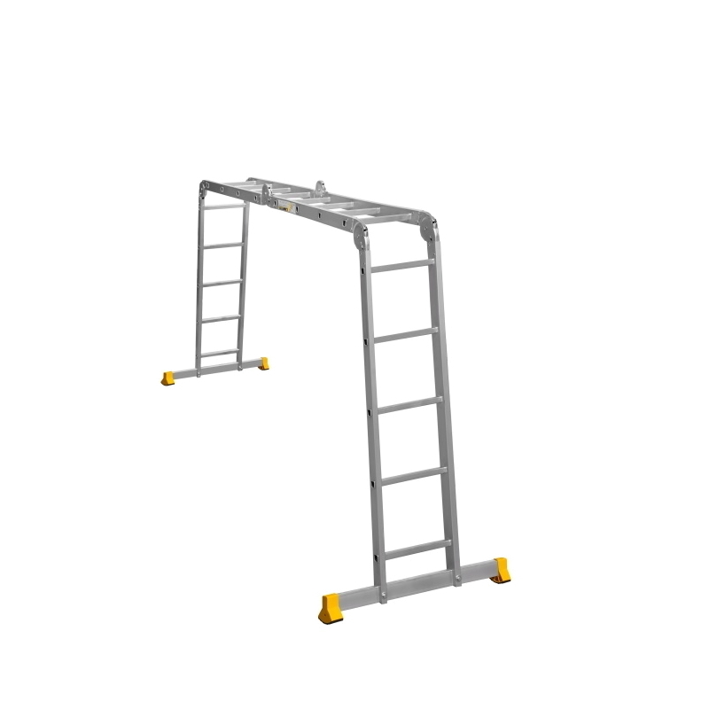 Алюминиевая лестница-трансформер Алюмет T445 предназначена для работы на высоте от 3,64 м до 6,33 м. Шарнирная лестница состоит из 4 секций — двух с 4 ступенями и двух с 5 ступенями. Ширина ступенек 33 см позволяет работать в ограниченном пространстве.