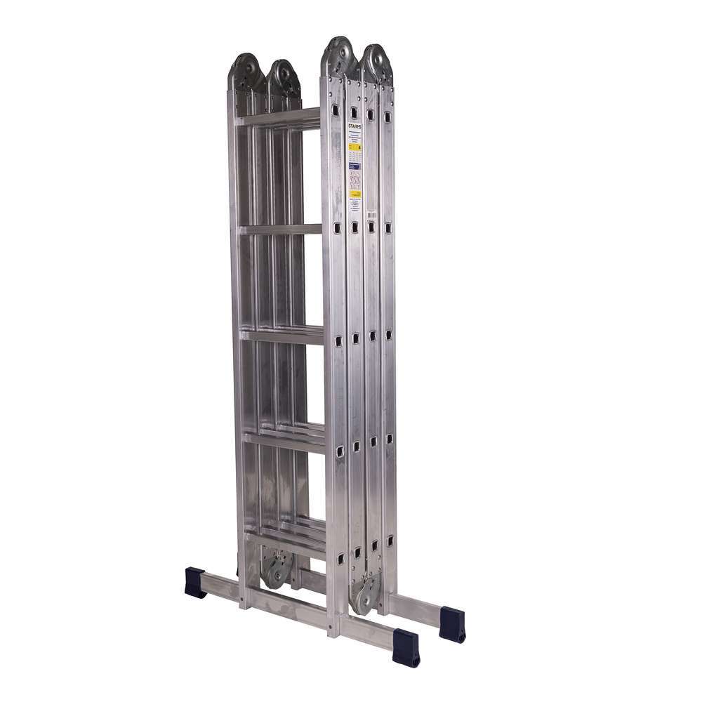 Лестница-трансформер алюминиевая STAIRS 4х5ступени (AТR45) - это универсальная лестница и заменяет несколько разных изделий. Лестница легко превращается в двухстороннюю стремянку, приставную лестницу или лестницу с консолью. В положении помост запрещено использование без твёрдого, жёсткого настила на рабочей площадке. Алюминиевый сплав делает лестницу легкой, но при этом прочной за счет увеличенной изностойкости материала. Алюминий не подвержен коррозии, что позволяет использовать лестницу как в помещении, так и на открытом пространстве.