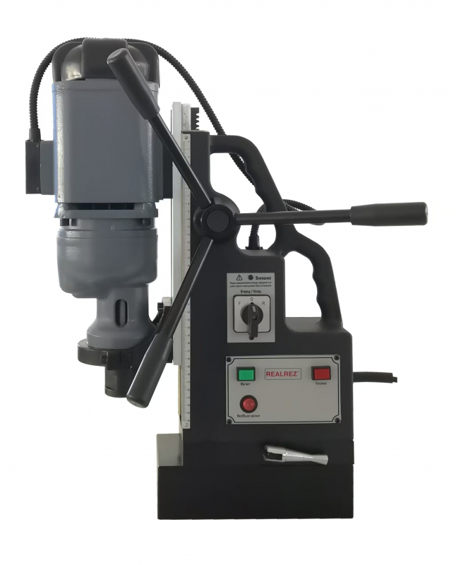 Магнитный сверлильный станок REALREZ RMD49Т 1900W – это переносной сверлильный станок на магнитном основании предназначен для промышленного использования, сверления большого количества отверстий диаметром до 55 мм, и, также будет надежен при использовании спиральных сверл диаметром до 49 мм.