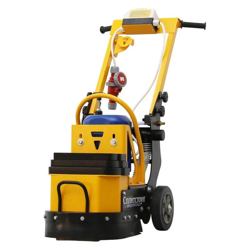 Машина мозаично-шлифовальная Сплитстоун GM122-4 предназначена для выравнивания и полировки различных горизонтальных поверхностей - полов, плит, перекрытий, стяжек и т.д. Машина отличается высокой производительностью и качеством выполнения работ. Благодаря укороченной базе, машина более компактна и манёвренна по сравнению с другими моделями. Эта модификация получила регулировку, позволяющую выставлять шлифовальную траверсу относительно обрабатываемой поверхности. Ограждение инструмента является регулируемым и съёмным, что позволяет легко очищать планшайбу после работы, а износостойкий резиновый уплотнитель ограждения обеспечивает плотное прилегание к обрабатываемой поверхности. Машина оборудована системой крепления шлифовальных /полировальных инструментов «Франкфурт». На траверсу устанавливается 3 шлифовальных элемента. Установка осуществляется в специальные пазы без использования дополнительных крепежных элементов.