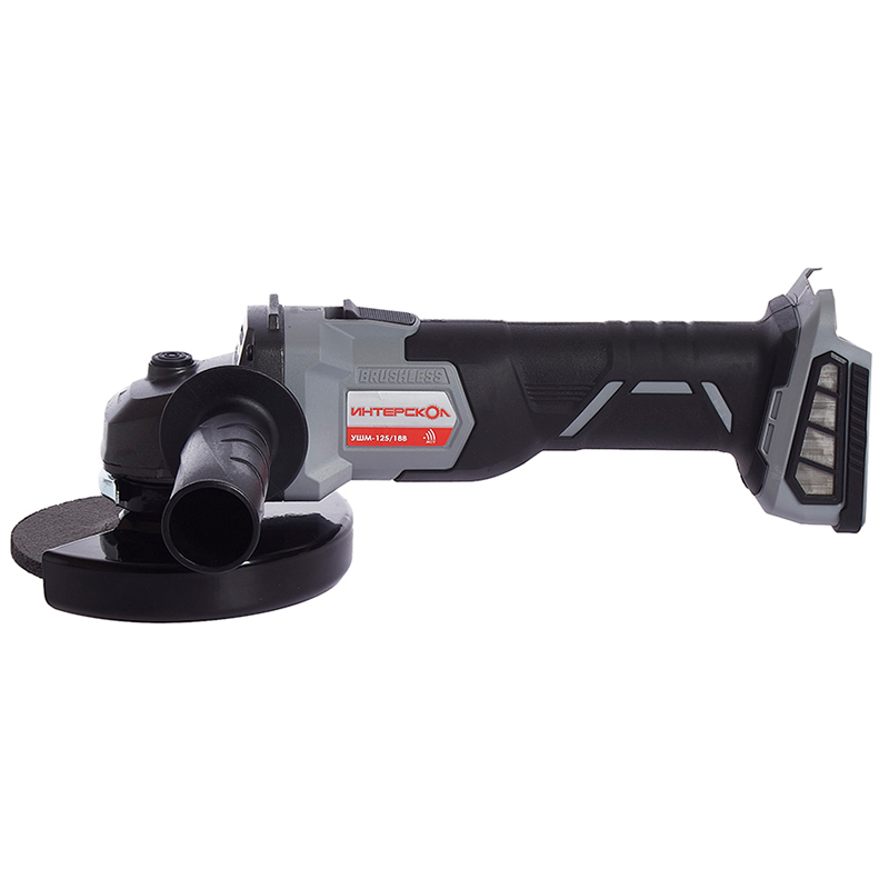 Машина шлифовальная угловая ИНТЕРСКОЛ УШМ-125/18В (без акк, без з/у) c вентильным бесщеточным приводом применяется для резки и шлифовки металлических или каменных материалов, обработки их крацовками и т.п. Воздухозаборные решетки находятся на максимально возможном расстоянии от точки обработки и дополнительно защищены металлической сеткой. Вся механика на шариковых и роликовых подшипниках качения.