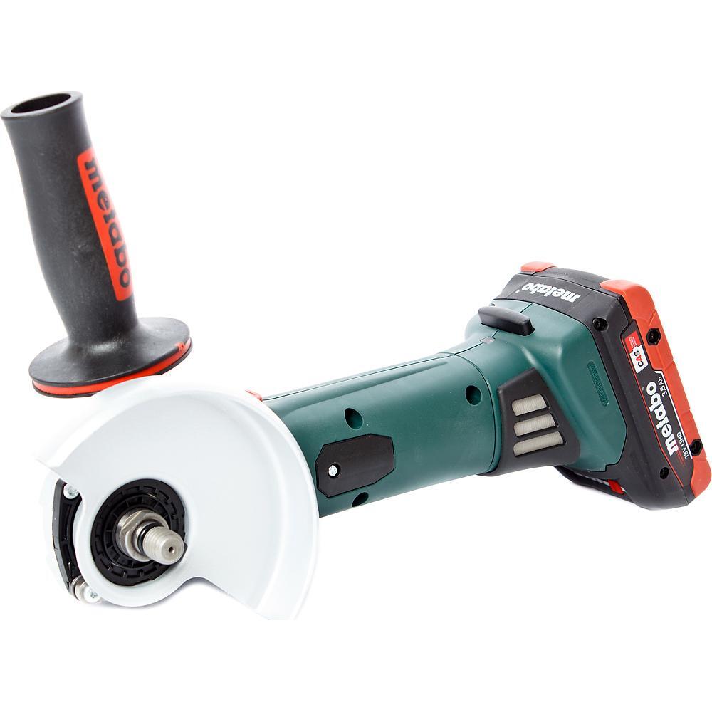 Аккумуляторная УШМ Metabo W 18 LTX 125 – компактный и мобильный инструмент для работы в стесненных условиях. Болгарка работает на Li-Ion батарее 18 В емкостью 4 А/ч. АКБ имеет повышенную мощность, сравнимую с мощностью электроинструмента. Поворотный блок аккумулятора делает комфортной работу в углах.