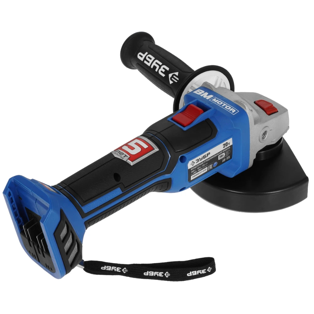 Машина шлифовальная угловая аккумуляторная ЗУБР AB-125 (без акк, без з/у) — профессиональный инструмент нового поколения для эффективной работы в составе единой аккумуляторной системы 20V MAX LITHIUM PRO. Модель отличается повышенной производительностью и экономичностью благодаря современному бесщеточному двигателю BM-Motor, который обеспечивает в 2 раза больший крутящий момент по сравнению с щеточными аналогами и способен работать до 4 раз дольше на одном заряде аккумулятора.