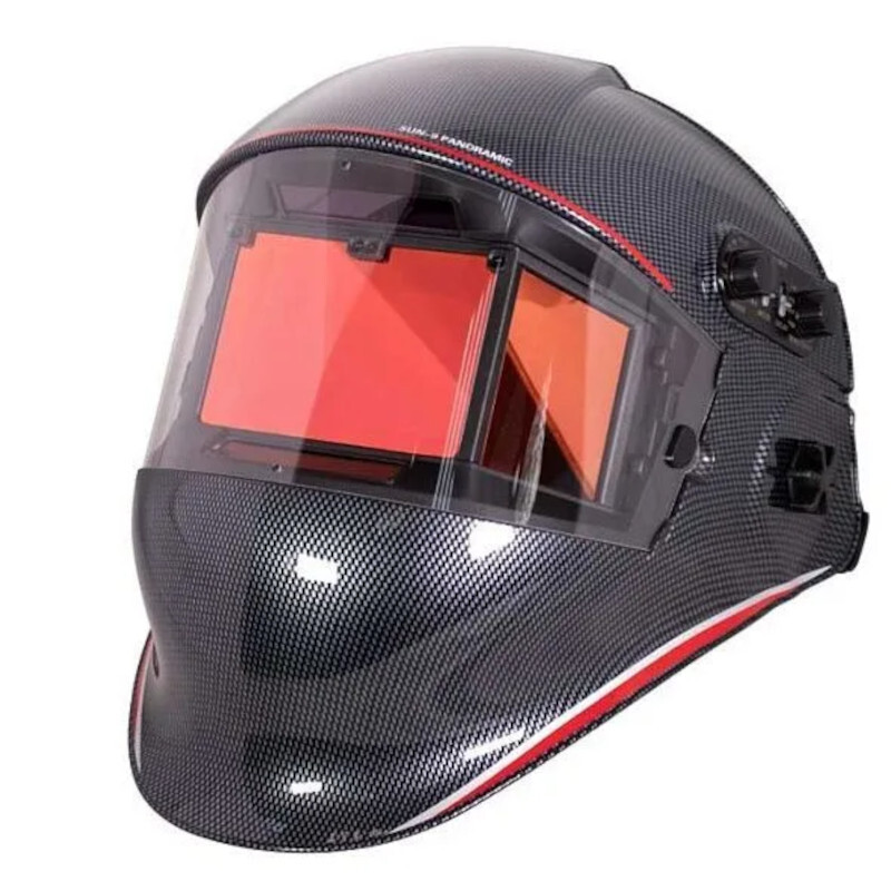 Маска сварщика хамелеон Aurora Хамелеон SUN9 PANORAMIC предназначена для защиты глаз и лица от искр, брызг, а также от вредного излучения и радиации при нормальных условиях сварки. Автоматический светофильтр моментально темнеет при зажигании дуги и светлеет, когда сварка окончена. Светофильтр нового поколения оснащен технологией естественной цветопередачи. Цвет светофильтра имеет очень комфортный для сварщика оттенок, как на хороших солнечных очках. При полном затемнении фильтра цвета не искажаются ни в зелёную, ни в фиолетовую область. При этом светофильтр Aurora такжесохраняет максимальный уровень защиты от вредного синего спектра. Маска имеет три защитных стекла с углом обзора 180 градусов. Фрональная часть с регулируемой степенью затемнения 4-13DIN, боковые окна со статичным затемнением 4DIN. Евро-оголовье с мягким налобником, небольшой вес и оптимальный баланс маски - позволяют снизить утомляемость сварщика и обеспечить комфорт на протяжении всего рабочего дня. Источник питания: солнечная батарея + литиевая батарея.