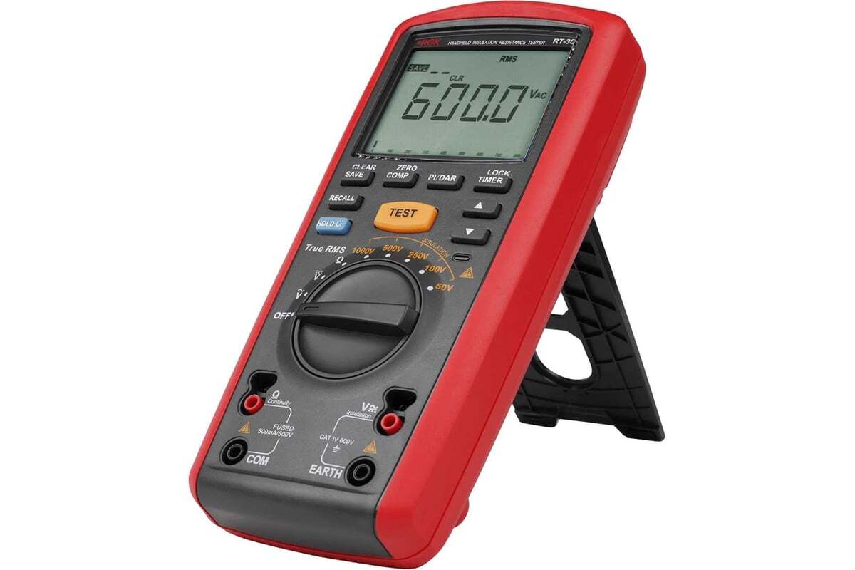 Цифровой мегаомметр RGK RT-30 - прибор для электротехников и специалистов по ремонту, который используется для быстрой оценки состояния изоляции силовых кабелей. Чаще всего устройство применяется для техобслуживания промышленного оборудования (электродвигателей, трансформаторов) и сетей, в сервисных центрах по ремонту электроники и при работе с электрическими системами обогрева пола.