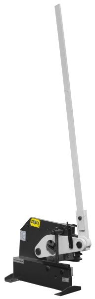 Станок способен резать полосовую сталь 100х10 мм, листовая сталь толщиной до 8 мм и тавровые балки размером до 40х6 мм. Ножницы оснащены прочным прижимом, регулируемым по высоте и высококачественными режущими ножами.