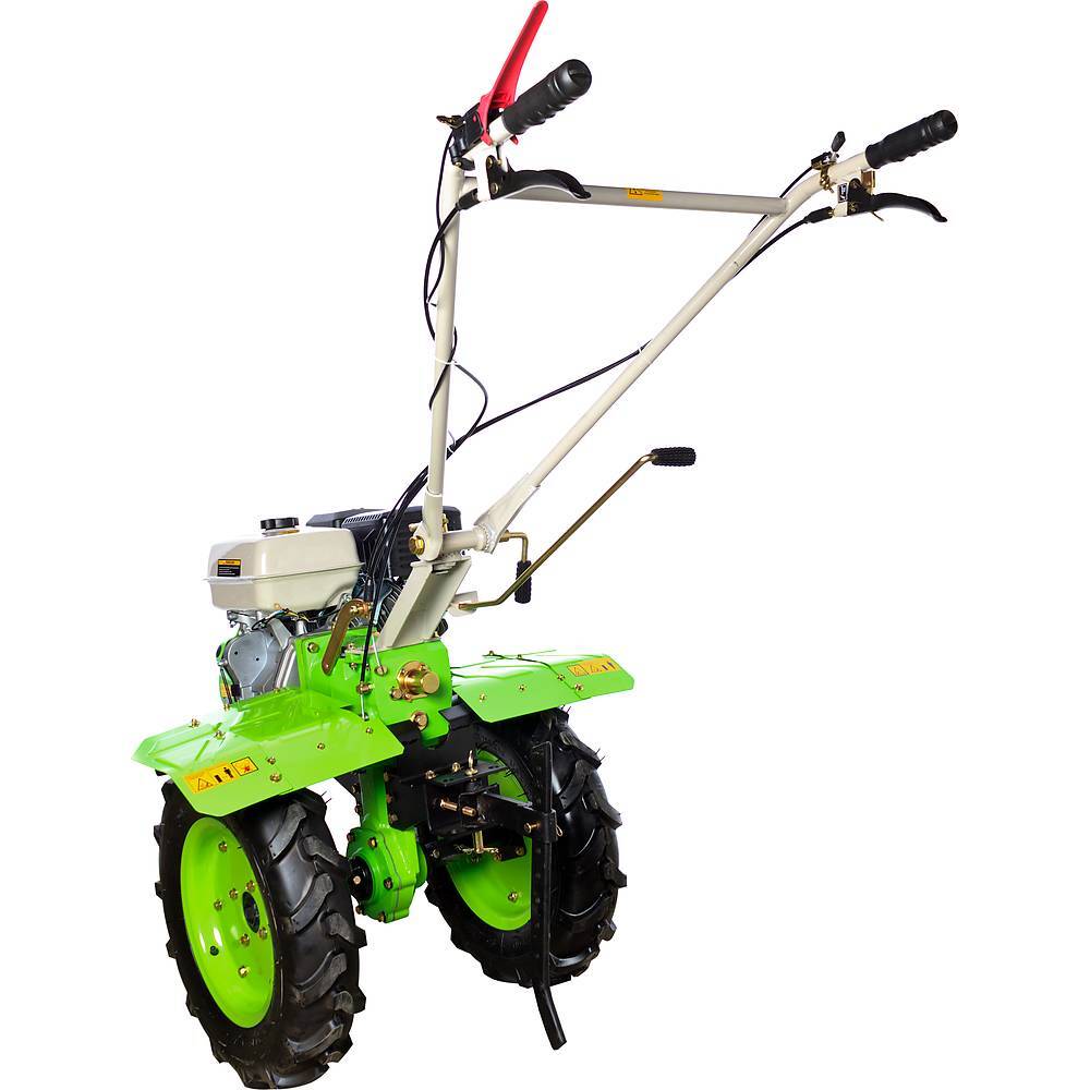 Мотоблок Голиаф-2-15Б производительный и удобный в эксплуатации агрегат, с четырёхтактным бензиновым двигателем B190F/P, объёмом 420 кубических сантиметров и мощностью 15 л.с. Две передние скорости и реверс позволяют работать в разных режимах нагрузки. Мотоблок имеет шестерёнчатый редуктор и дисковый тип сцепления. Диаметр колёс 24 дюйма. Максимальный диаметр фрезы 360 мм. Ширина вспашки 1100 мм, глубина 300 мм. Масляной бак с ёмкостью 1,5 литра, ёмкость топливного бака 6 литров. Вес товара 150 кг.