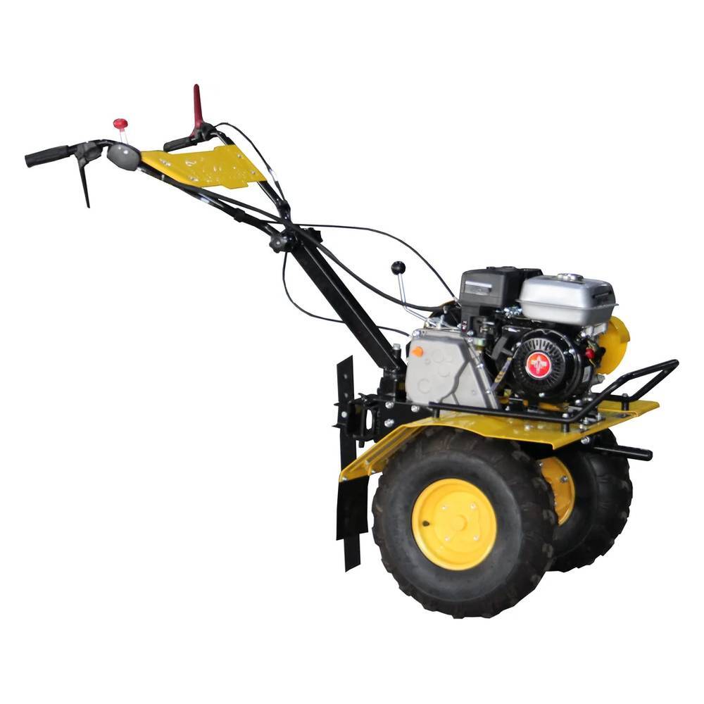 Одноцилиндровый 4-х тактный двигатель марки Вымпел обладает мощностью 7 л.с. Шестеренчато-цепной редуктор позволяет перемещаться на 4 скоростях вперед и 2 назад. Объем бака рассчитан на 3,6 л топлива. Расход бензина 395 г/кВтч позволяет обрабатывать большие участки без частой дозаправки.