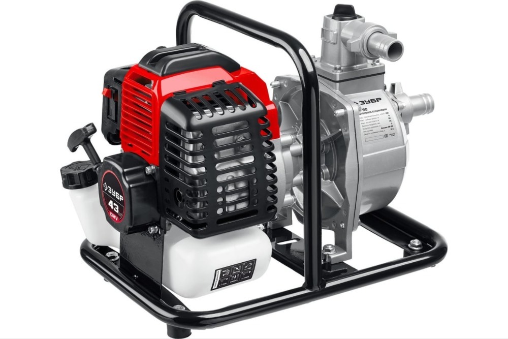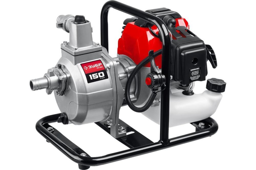 Мотопомпа бензиновая ЗУБР МП-150 - облегченная мотопомпа для чистой воды идеально подходит для орошения садов и газонов, фруктовых и овощных посадок. Простой и неприхотливый 2-х тактный двигатель ЗУБР гарантирует безотказность работы. Мотопомпа способна перекачивать слабозагрязненную воду с включением частиц до 10 мм. Металлическая рама с ножками обеспечивает устойчивость конструкции. Металлические патрубки для присоединения шлангов входят в комплект. Небольшой вес способствует легкой транспортировке, что актуально для женщин или людей пожилого возраста. Удобная ручка для переноски.