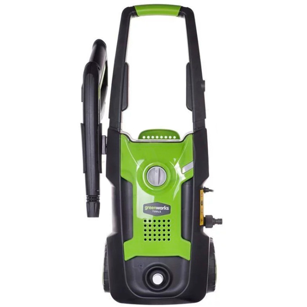 Мойка высокого давления Greenworks GPWG3 – универсальный бытовой агрегат, работает от сети. Применяется для удаления загрязнений, подходит для чистки автомобилей и мотоциклов, уличной садовой мебели, оград, крыльца, декоративных элементов, садовых каминов и барбекю, строений и бассейнов. Имеет большие колёса и рукоять для удобной транспортировки. Мощность агрегата 1700 Вт или 2,3 л.с., рабочее давление 120 бар. Производительность техники 6,6 литров в минуту или 400 литров в час. Длина шланга 6 метров. Помпа алюминиевая. Есть бак для моющего средства, объёмом 0,5 литра. Степень защиты от пыли и влаги IPX5. Поддерживает функцию всасывания воды из ёмкости. Максимальная температура жидкости 40 градусов. Вес товара 8 кг.