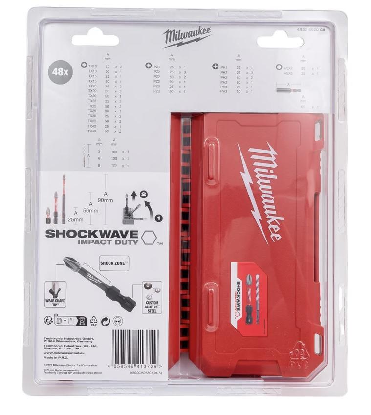 Набор бит Milwaukee Shockwave Imapct Duty (48шт) идеально подходит не только для работ импульсным гайковертом, это идеальное решение для любых видов работ по сверлению и закручиванию. Геометрия Shock Zone уменьшает давление на наконечник насадки и снижает риск поломки. Сочетание дизайна Shock Zone и специальной термообработки поглощают удары и делают насадку более эластичной. Компрессионный кованный наконечник обеспечивает отличную посадку в головку винта. Специальная формула Milwaukee® делает насадки Shockwave более устойчивыми к воздействию ударов.