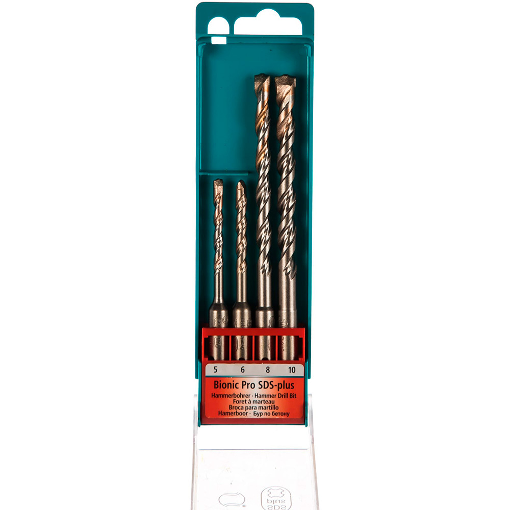 Набор буров SDS plus Heller Bionic Pro 5-10мм 4шт (16490) оснащены широкой спиралью, которая помогает быстро отводить пыль из зоны бурения.