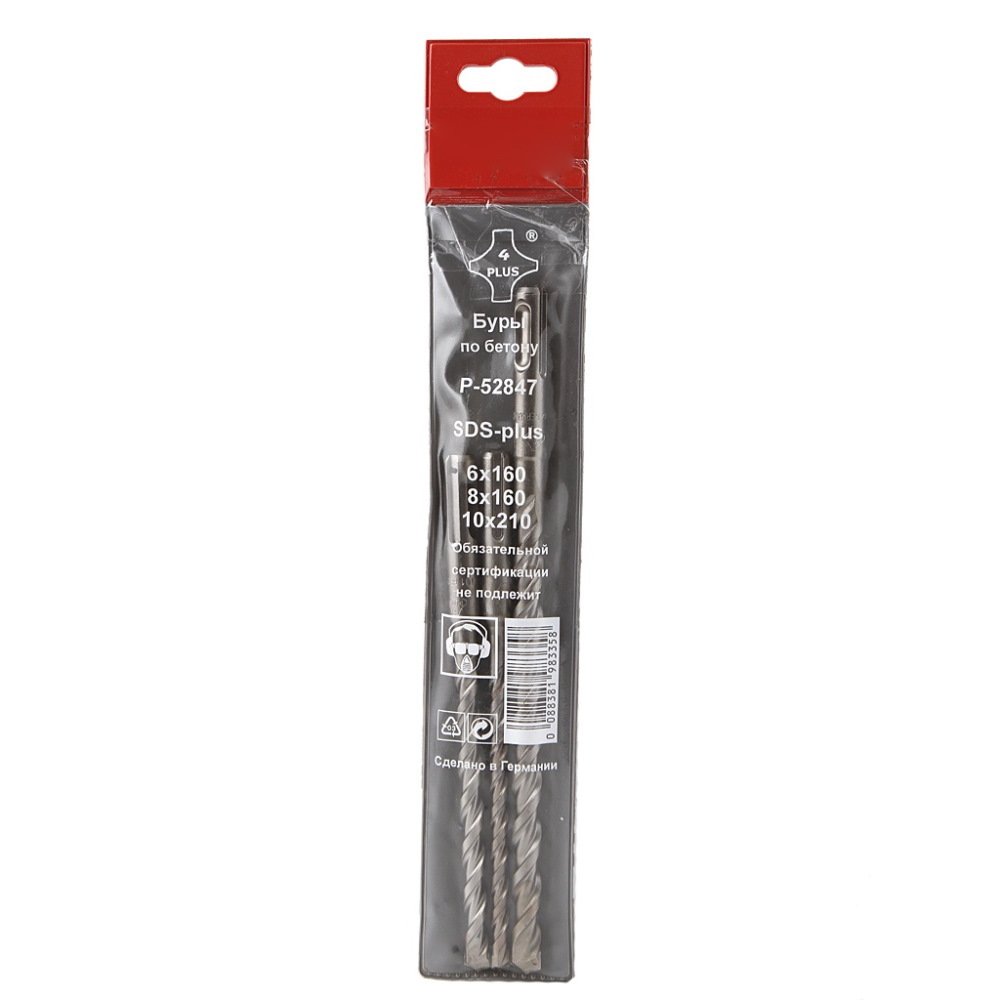 Набор буров Makita SDS -PLUS 4 Plus - предназначены для высверливания отверстий в бетоне и кирпиче. Спираль особой формы, благодаря чему обеспечивается повышение скорости сверления и лучший отвод пыли. В наборе 3 бура (диаметр х длина): 6х160 мм; 8 х160 мм; 10х210 мм.