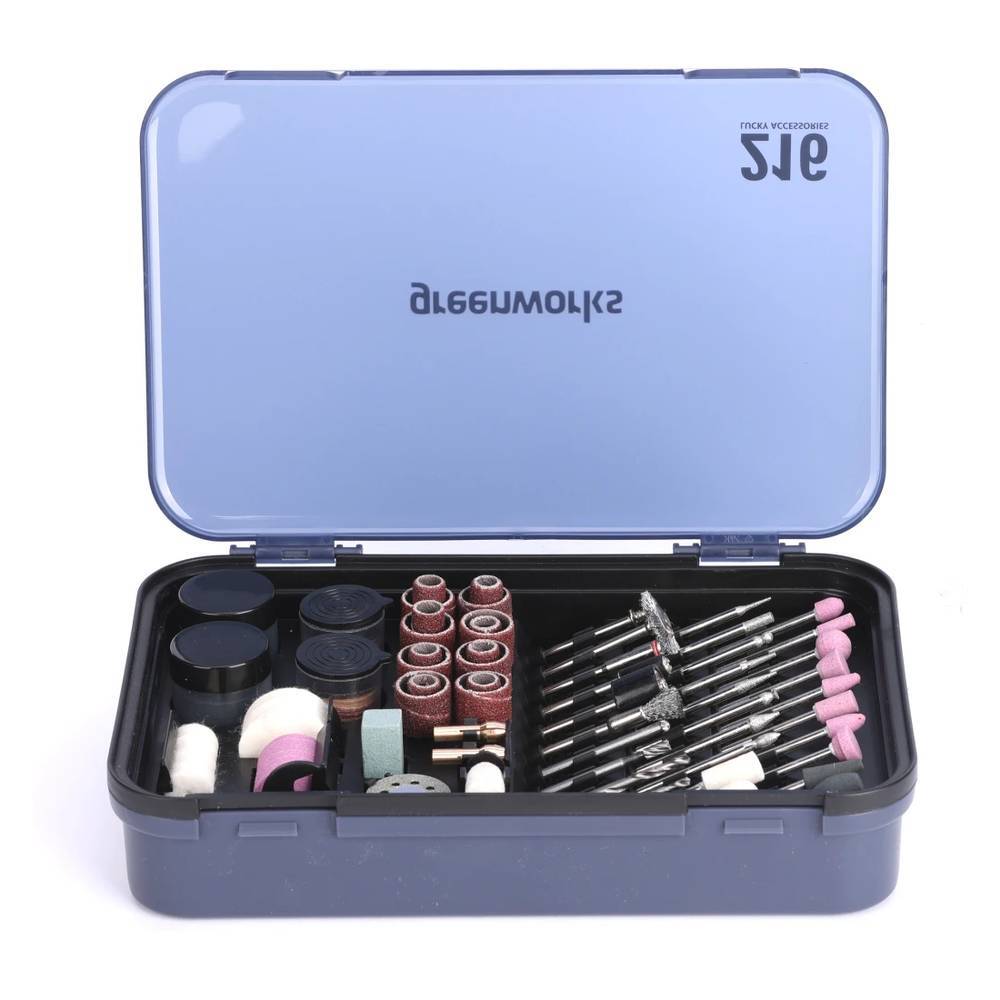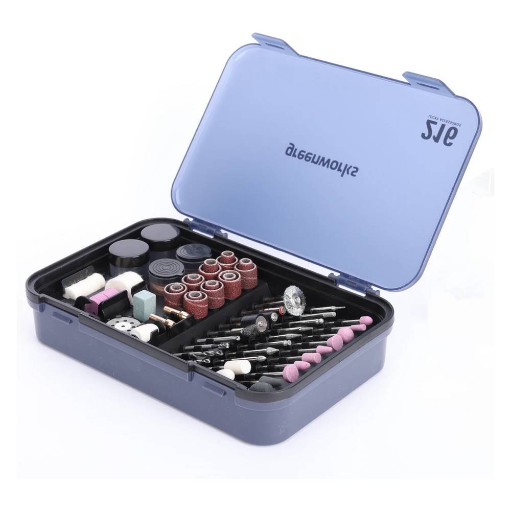 Набор оснастки для гравера Greenworks 216 предметов (3503507) для выполнения различных операций, например гравировки, сверления, шлифовки, полировки и резки. С помощью набора можно выполнить множество работ, таких как шлифовка, полировка, гравировка, сверление или резка широкого спектра материалов: керамика, фарфор, пластик, металл, стекло, металл, алюминий, ракушки, латунь, эпоксидная смола, кокос, нефрит, натуральный камень, пластилин, орех, кость, дерево и т. д.