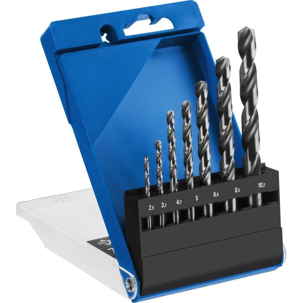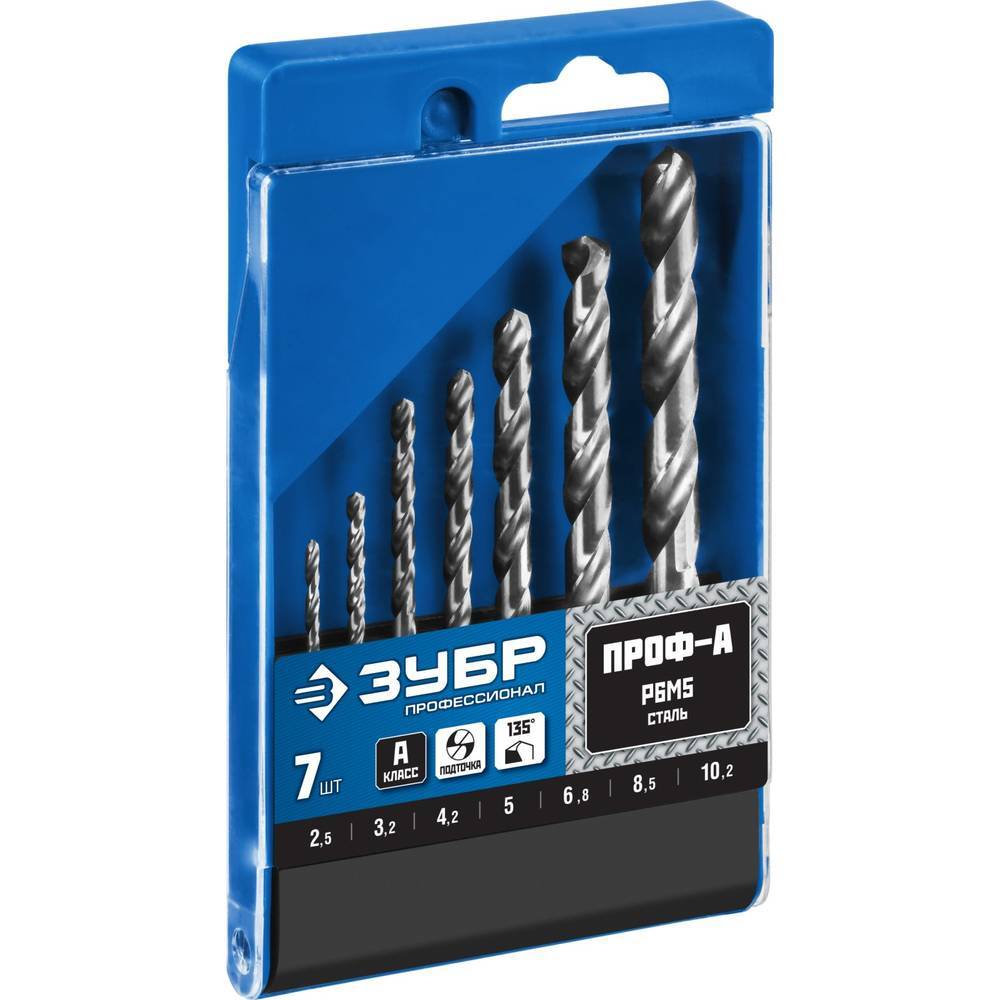 Набор сверл по металлу ЗУБР ПРОФ-А 2.5-10.2 мм 7 шт (29625-H7R) предназначен для обработки легированных и углеродистых сталей с пределом прочности до 900Н/мм^2, цветных металлов, серого чугуна и пластмассы. Сверла, входящие в набор изготовлены методом шлифования профиля по ГОСТ 10902-77 и соответствуют классу точности сверления ″А1″. Крестообразная подточка сверла позволяет начать сверлить без предварительного кернения. Угол заточки при вершине равный 135° повышает производительность работ.