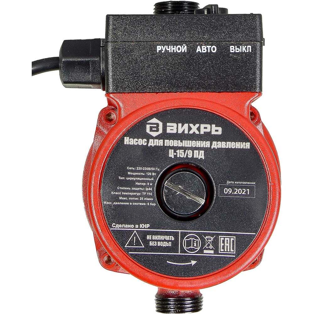 Циркуляционный насос Вихрь Ц-15/9 ПД обеспечит повышение давления воды в отопительной системе, а также в трубопроводах водоснабжения. Используют такие устройства и в промышленных системах охлаждения. Насос рециркуляции компактен. Перекачка воды осуществляется за счет вращения электрическим двигателем рабочего колеса. Параметры модели Вихрь Ц-15/9 ПД: Мощность устройства составляет 120 Вт. Температура жидкости, перекачиваемой по системе может варьироваться в пределах от -10 до +110 ℃. На корпусе расположена ручка переключения режимов, которых 3 (Выкл, Авто и Ручной). Подшипники и вал ротора выполнены из высококачественной керамики. Это делает работу насоса бесшумной и долговечной. Насос не нуждается в обслуживании, поскольку смазка и охлаждение подшипников происходит с помощью перекачиваемой воды. Рабочее колесо не окислится и не застрянет при длительном простое, так как при его производстве используются полимерные материалы. Стравливать воздух из системы можно, открутив заглушку ротора. Крышка насоса выполнена из чугуна, а корпус из алюминия. Циркуляционный насос Вихрь Ц-15/9 ПД – обязательный и эффективный компонент систем отопления и водоснабжения. Его приобретают в частный дом или коттедж. Простая конструкция наряду с качественными комплектующими делают его надежным и долговечным.