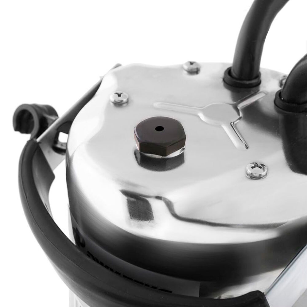 Фекальный насос оборудован поплавком, который автоматически отключает мотор при понижении уровня воды. Универсальный переходник подходит для шлангов диаметром 32-40 мм.
