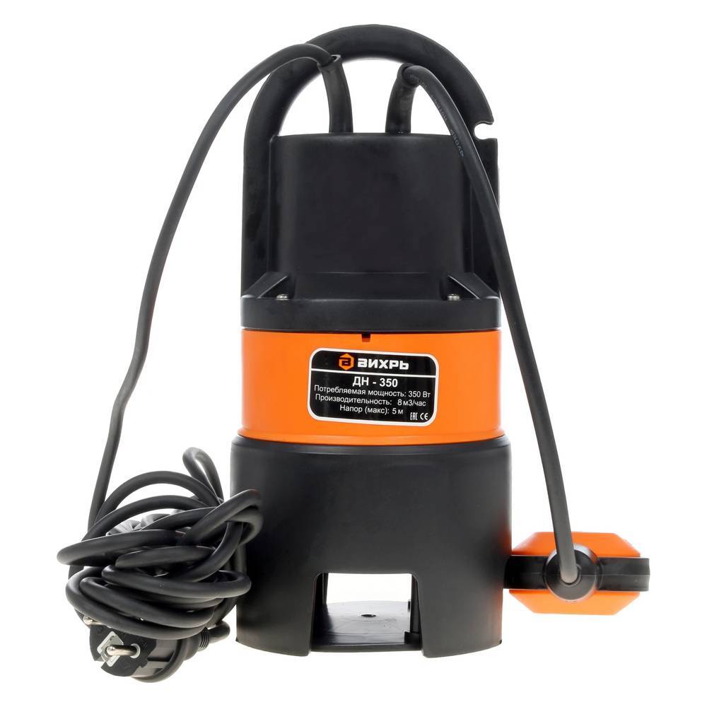 Универсальный дренажный насос Вихрь ДН-350 с асинхронным однофазным двигателем мощностью 350 Вт подходит для перекачивания воды из различных водоёмов, скважин и резервуаров. Благодаря особенностям конструкции данной модели, её можно использовать для откачки загрязненной большим количеством примесей жидкости. Максимальный допустимый диаметр частиц при этом составляет 35 мм. Данная модель насоса может использоваться в случае, если воду необходимо откачать из подвала или другого подтопленного помещения. Максимальный напор составляет 5 м, а скорость подачи – до 133 л/мин.