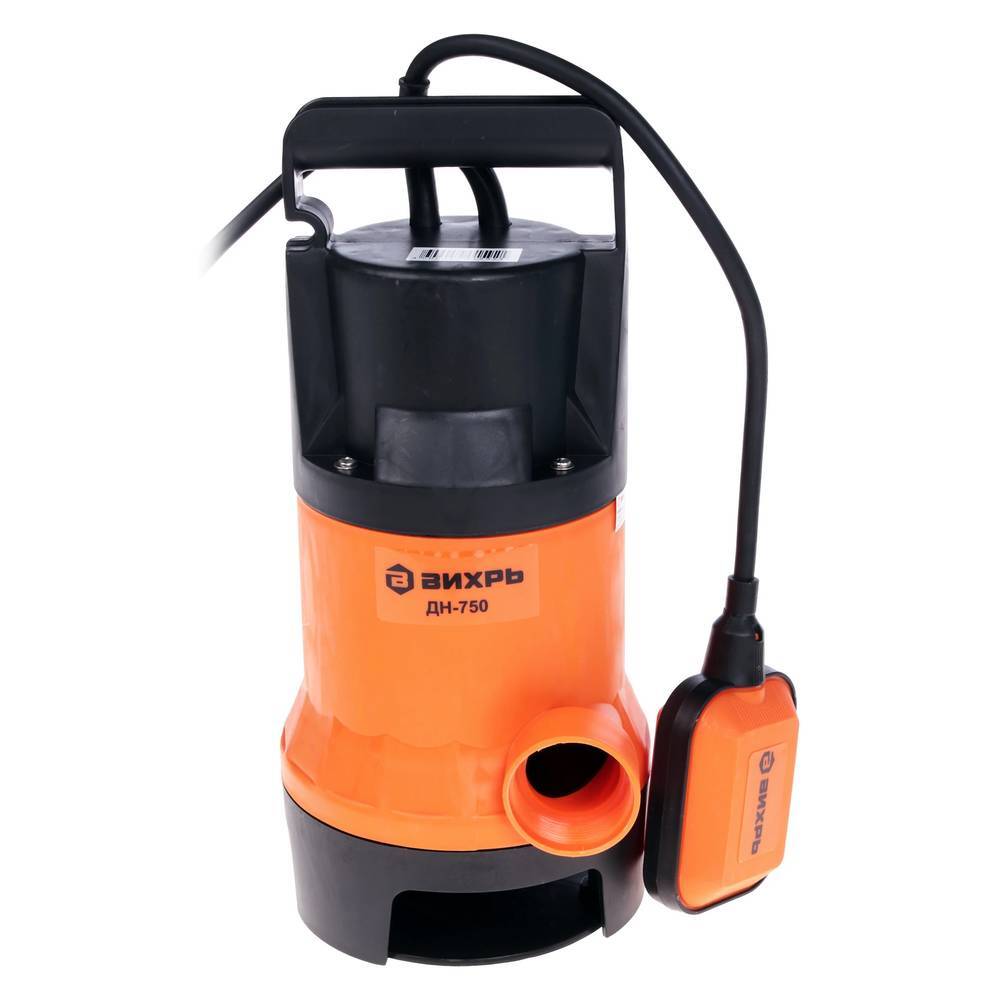 Дренажный насос оснащен поплавковым выключателем для предотвращения работы «всухую». Длина кабеля поплавка настраивается в зависимости от дебета водоема, чтобы двигатель отключался при достижении минимального или максимального уровня воды. В модели Вихрь ДН-750 нижний забор воды, это необходимо учесть при установке уровня выключения насоса. Количество срабатываний не должно превышать 20 в час.