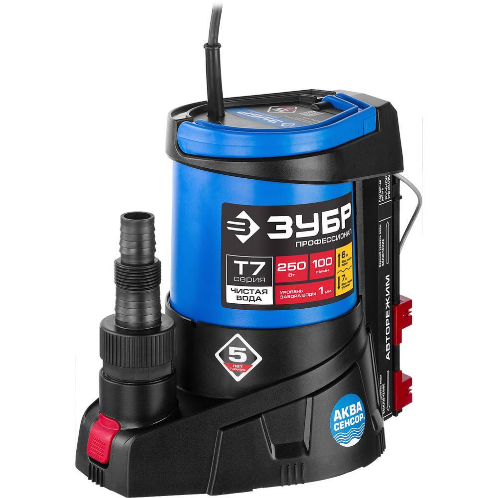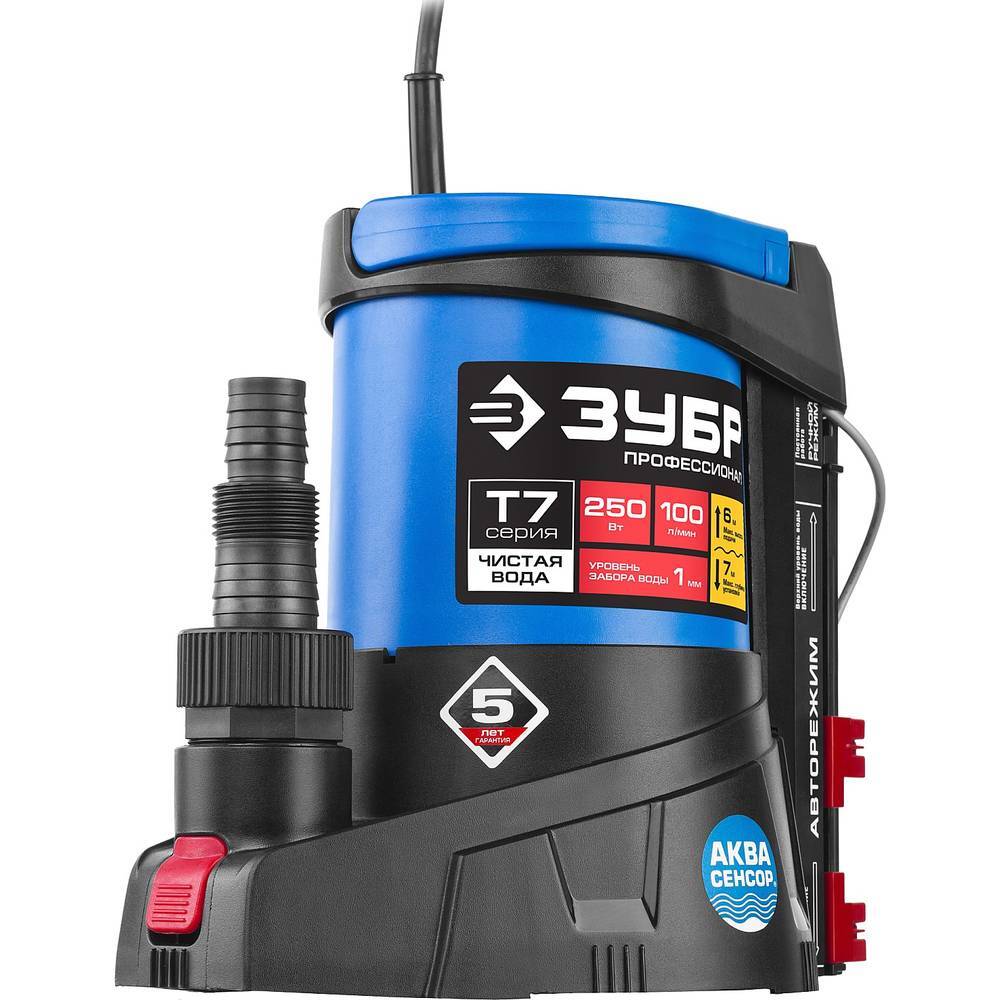 Насос дренажный ЗУБР АкваСенсор НПЧ-Т7-250 предназначен для автоматического перекачивания воды из емкостей и водоемов, организации забора воды с колодцев, скважин и подачи на высоту. Насос способен откачивать воду практически до остаточного уровня 1 мм — идеален для подвалов, погребов, котлованов и при затоплениях. Особенность модели — встроенный датчик уровня воды АкваСенсор, который обеспечивает автоматическое включение и выключение насоса. Также доступен ручной режим для постоянной работы. Насос перекачивает воду с включениями размером до 5 мм. Ударопрочный корпус из армированного стекловолокном пластика устойчив к механическим повреждениям и безопасен при контакте с водой. Износостойкая крыльчатка обеспечивает тихую и долговечную работу. Встроенный обратный клапан предотвращает слив воды после выключения и ускоряет запуск. Универсальный штуцер подходит для шлангов от 1" до 1 1/4" и труб от G1" до G1 1/2". Длина кабеля — 10 метров, что позволяет использовать насос на значительной глубине. Термопредохранитель защищает двигатель от перегрева.